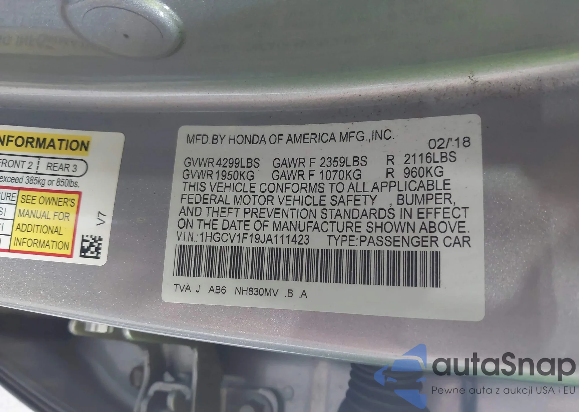 VIN: 1HGCV1F19JA111423