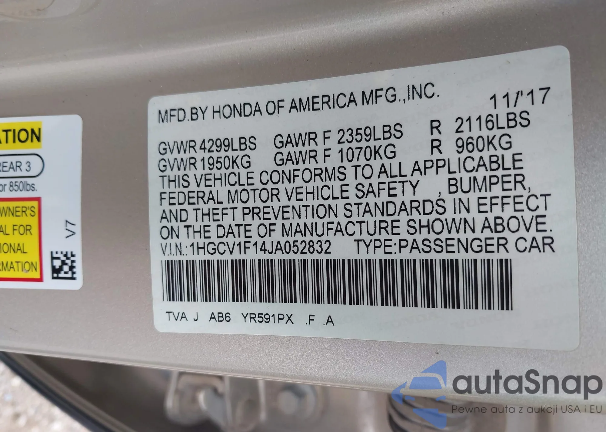 VIN: 1HGCV1F14JA052832