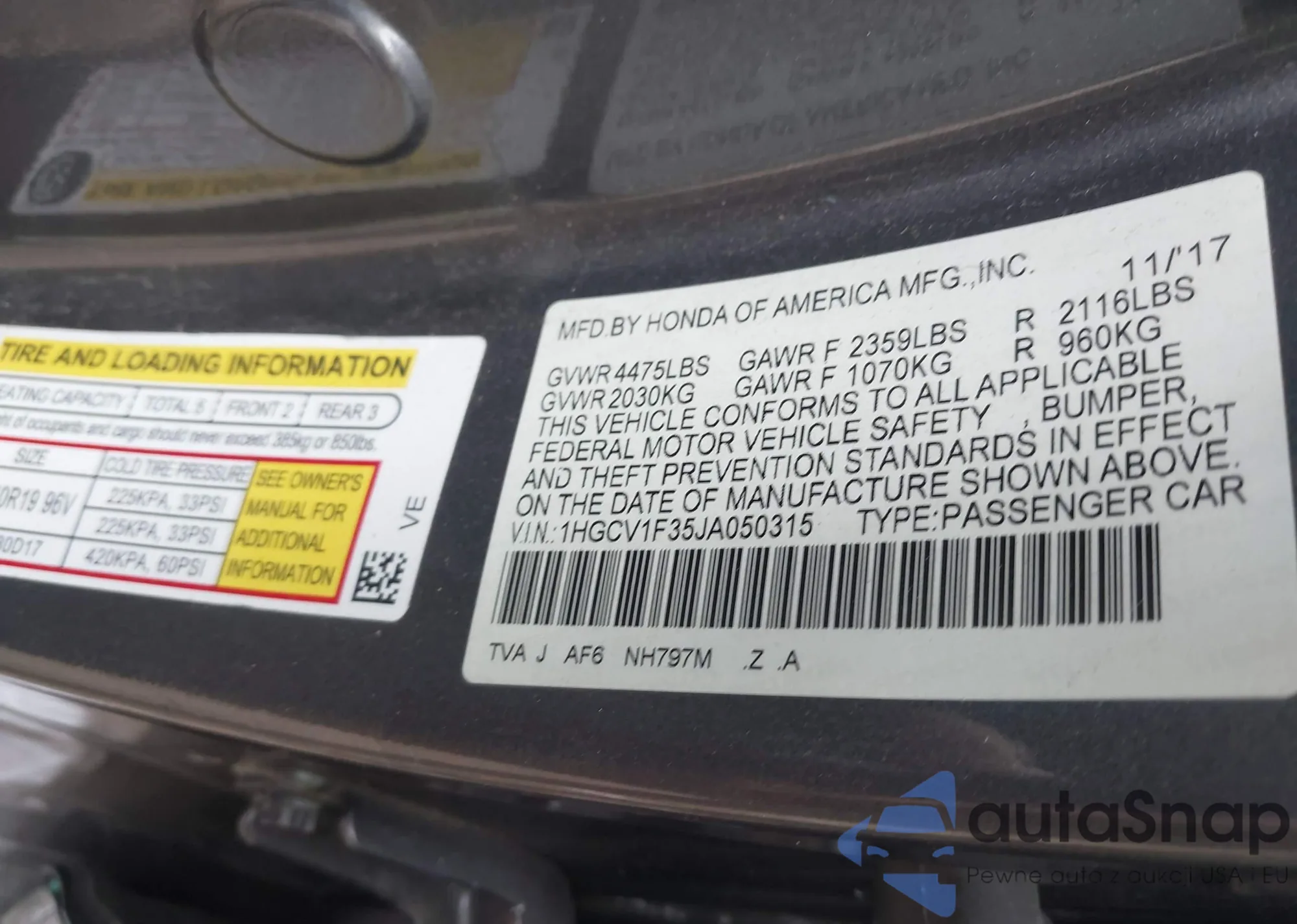 VIN: 1HGCV1F35JA050315