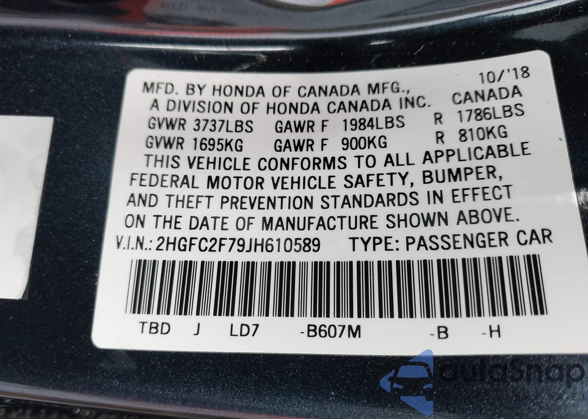 VIN: 2HGFC2F79JH610589