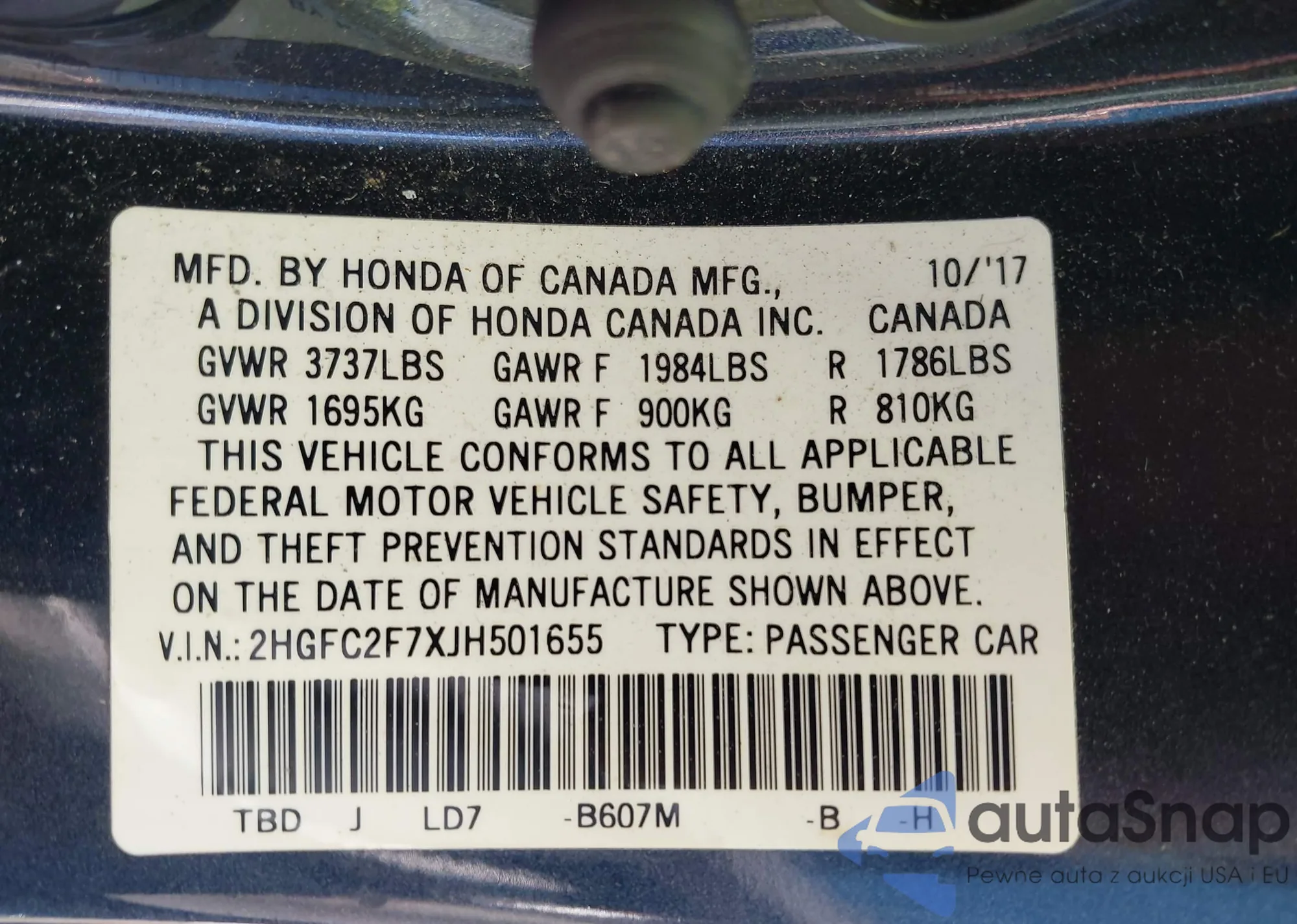 VIN: 2HGFC2F7XJH501655