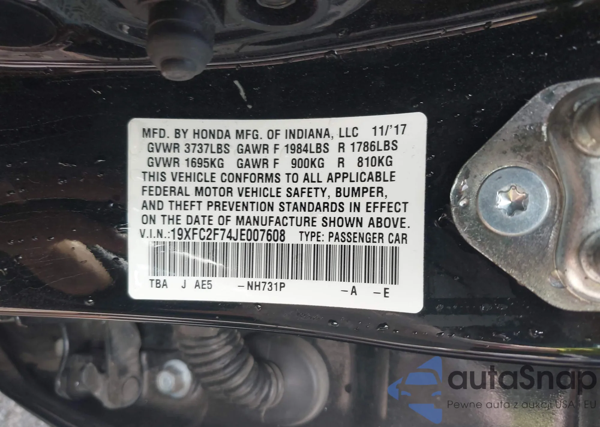 VIN: 19XFC2F74JE007608