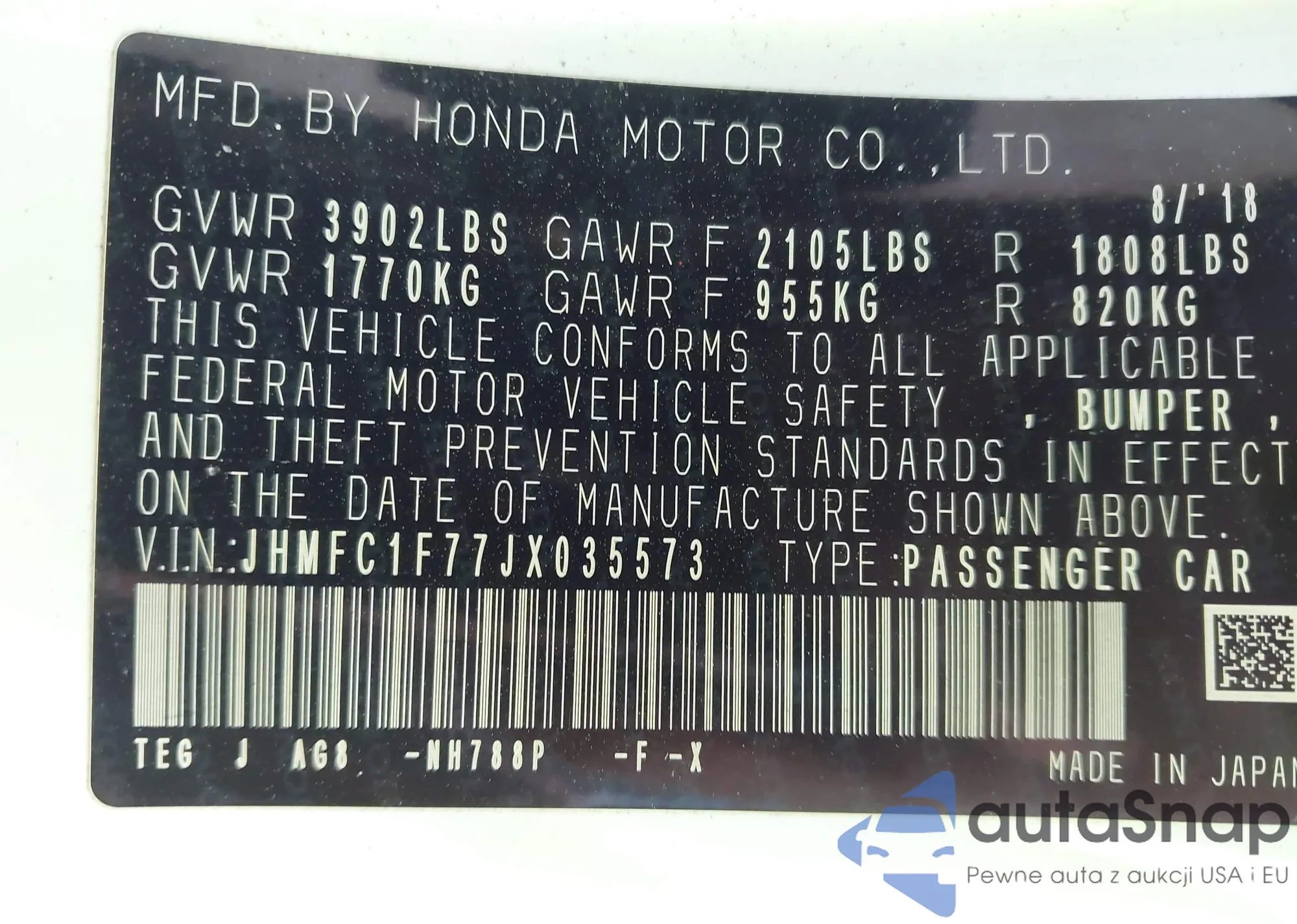 VIN: JHMFC1F77JX035573