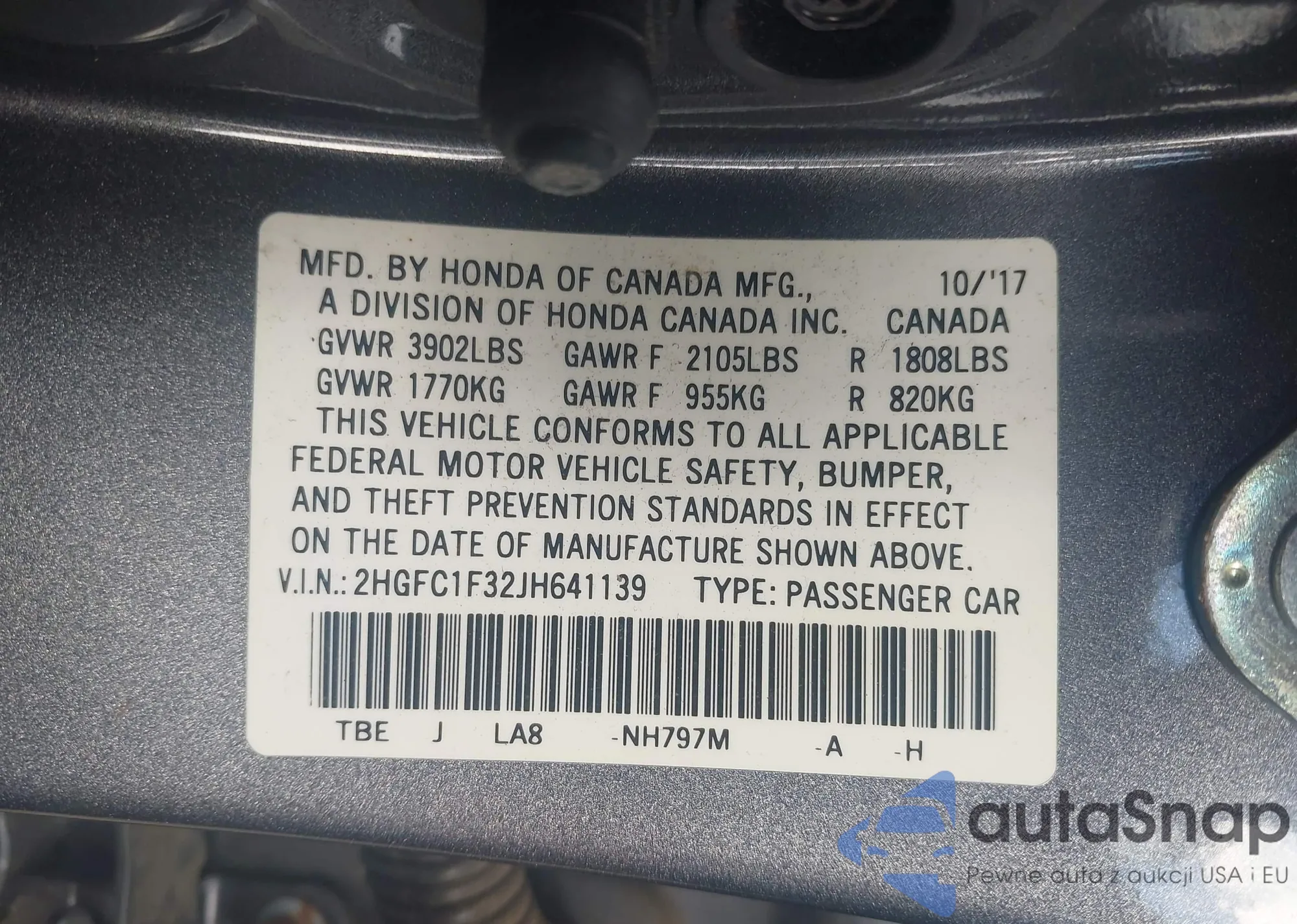 VIN: 2HGFC1F32JH641139