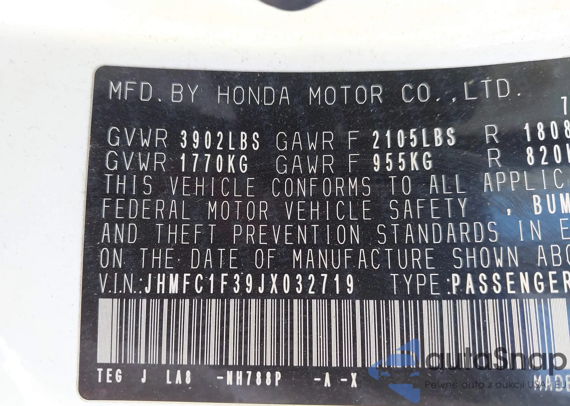 VIN: JHMFC1F39JX032719