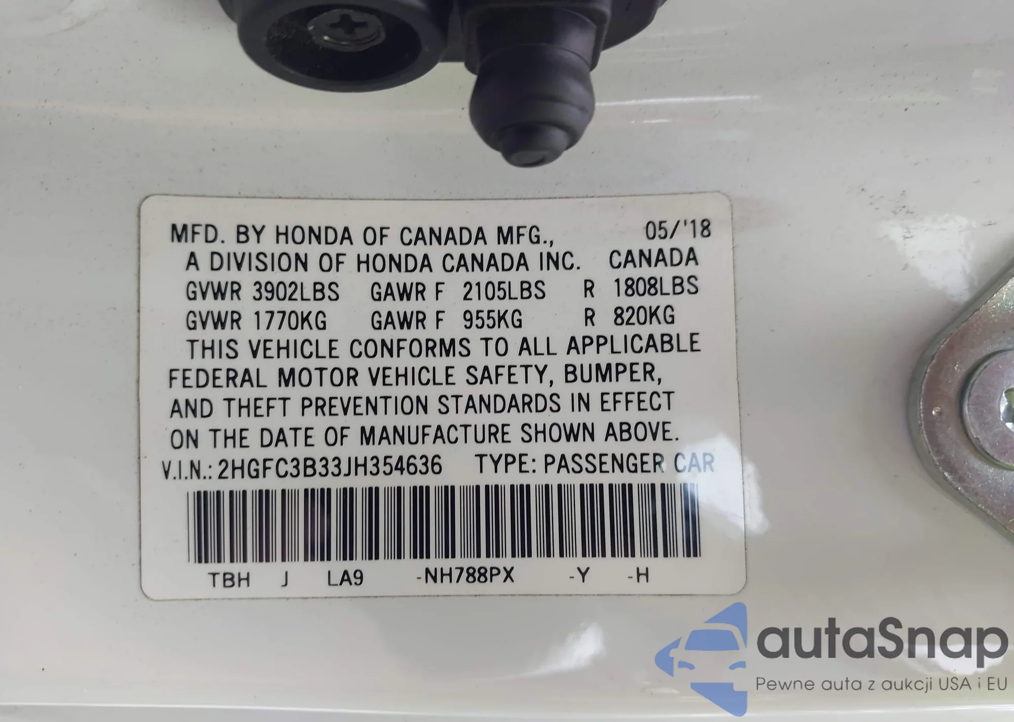 VIN: 2HGFC3B33JH354636
