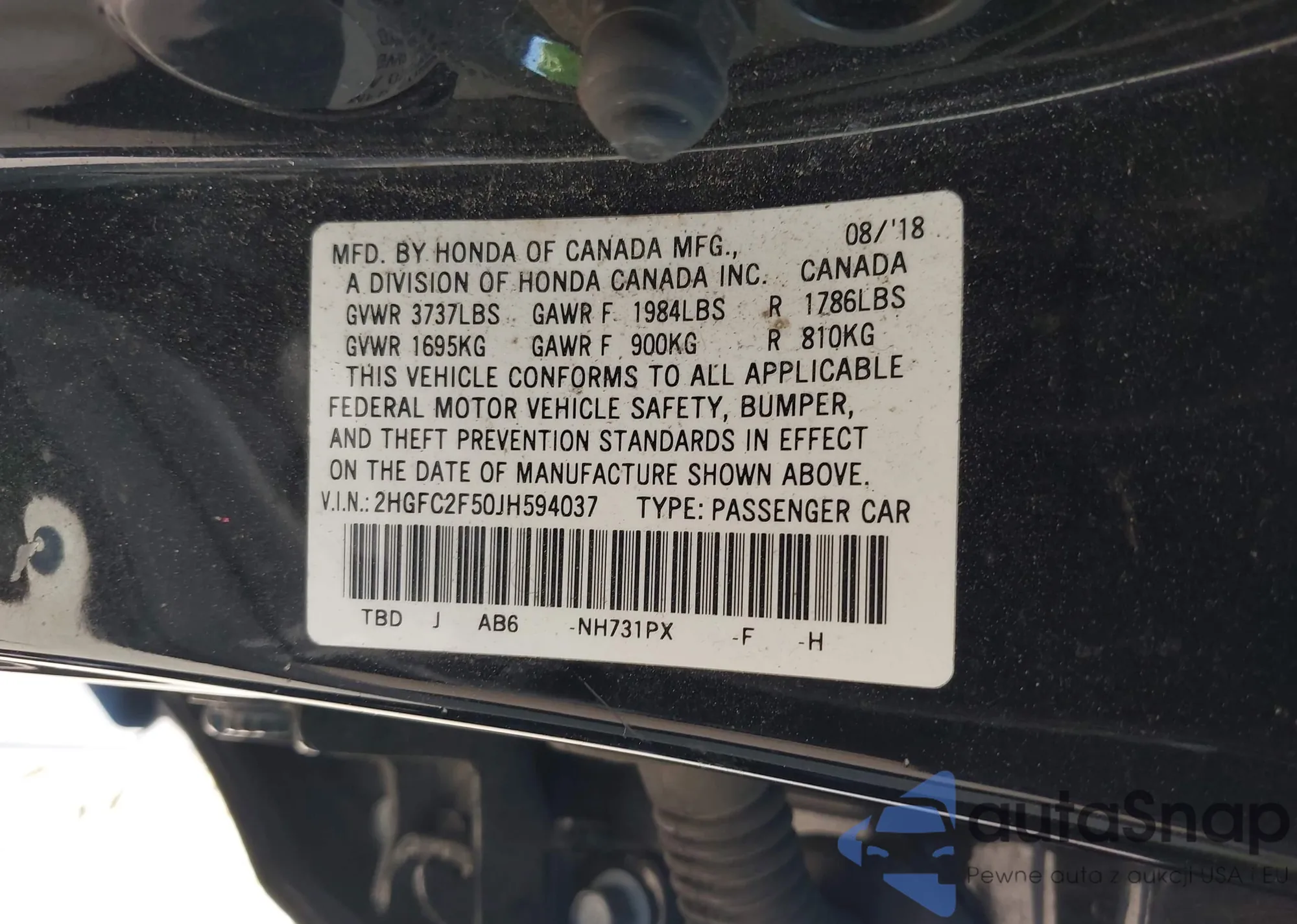 VIN: 2HGFC2F50JH594037