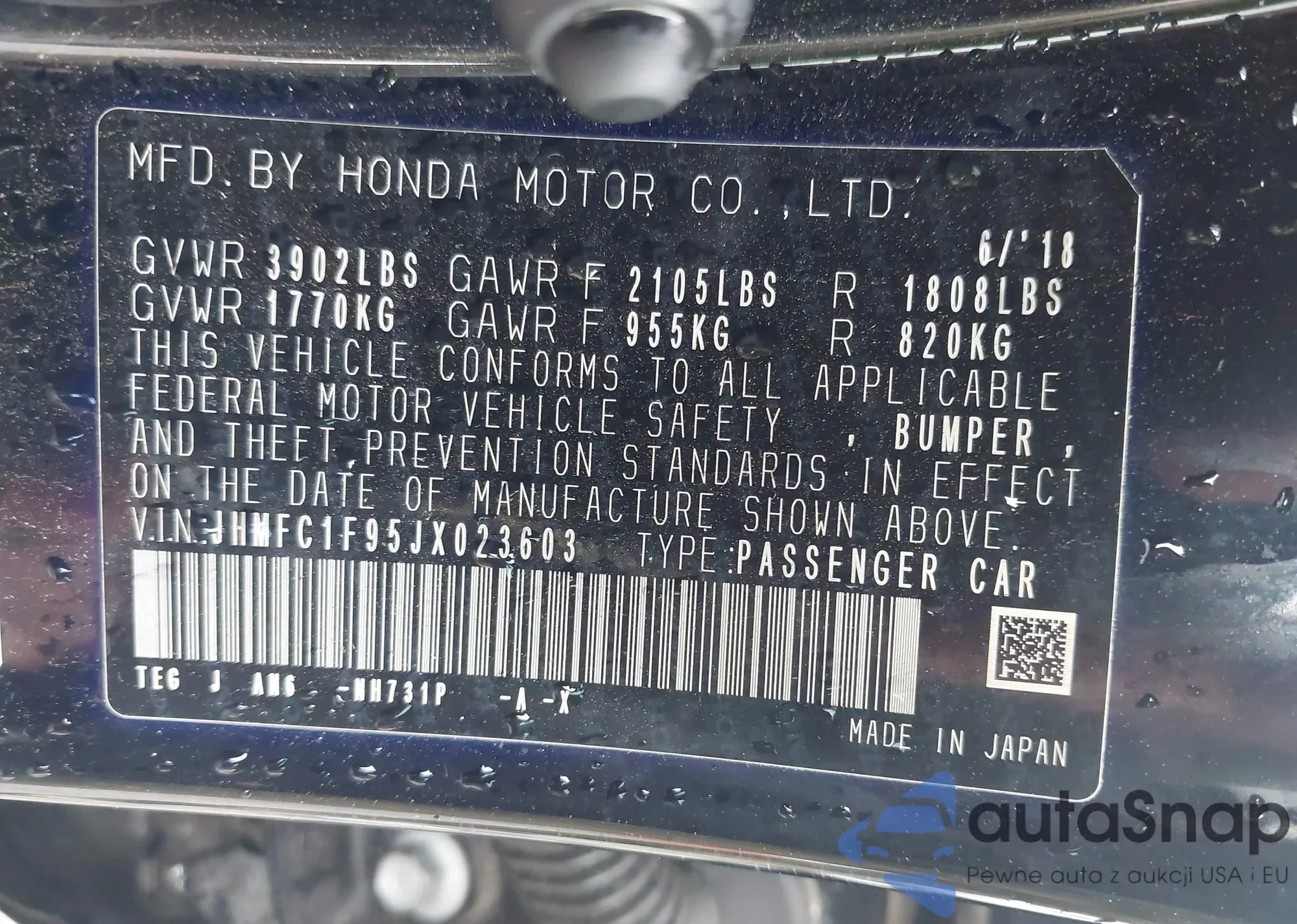 VIN: JHMFC1F95JX023603