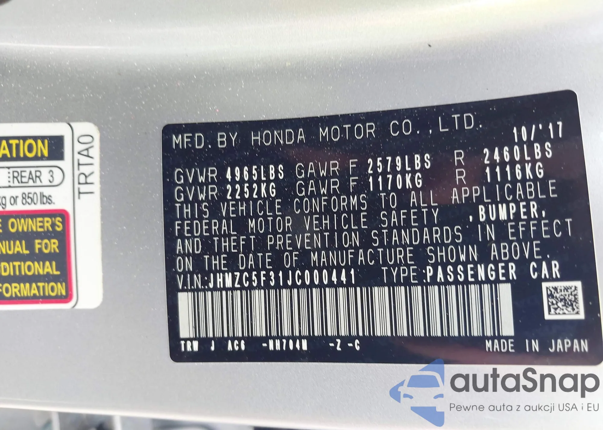 Автомобиль Honda Clarity 2018 (VIN JHMZC5F31JC000441) ранее не участвовал в торгах. Документы чистые, пробег соответствует или ниже среднего по рынку. Продаётся страховой компанией — рекомендуем покупку. Доставка в порт займет около 6–8 недель.