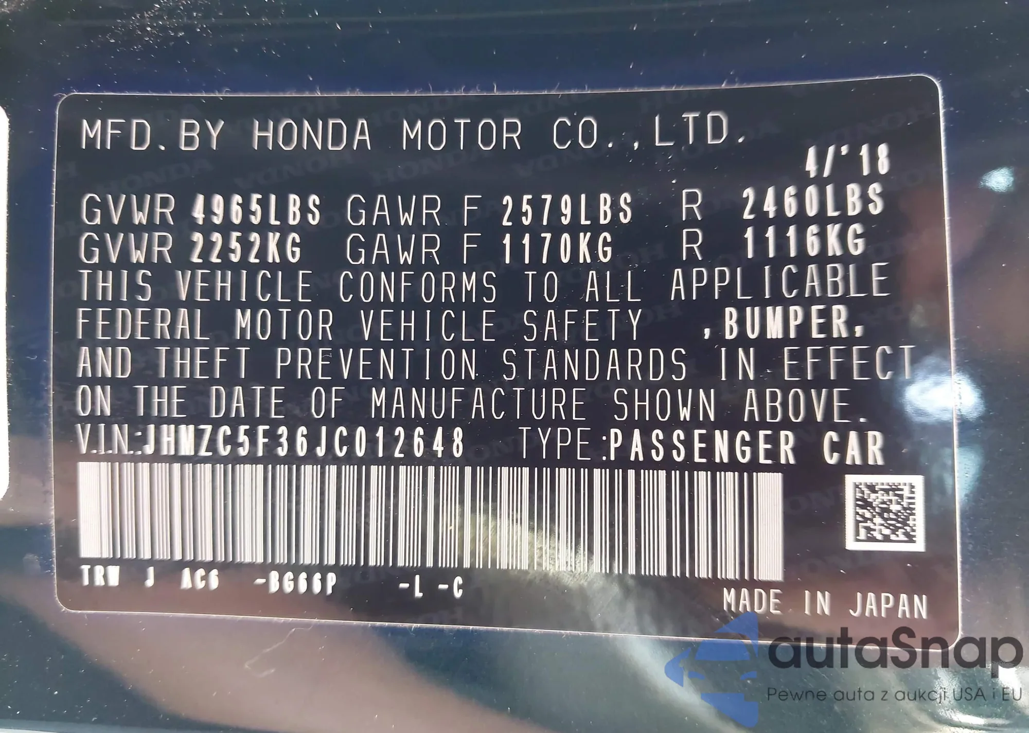 VIN: JHMZC5F36JC012648