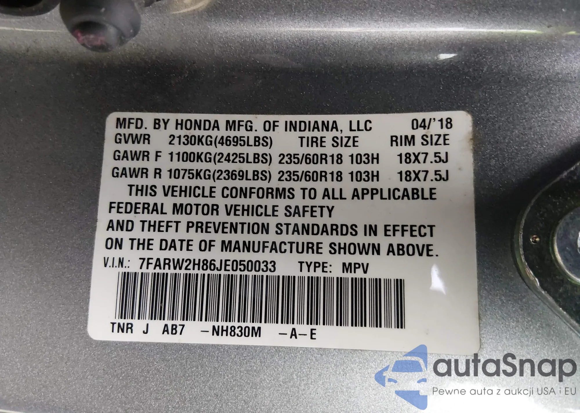 VIN: 7FARW2H86JE050033