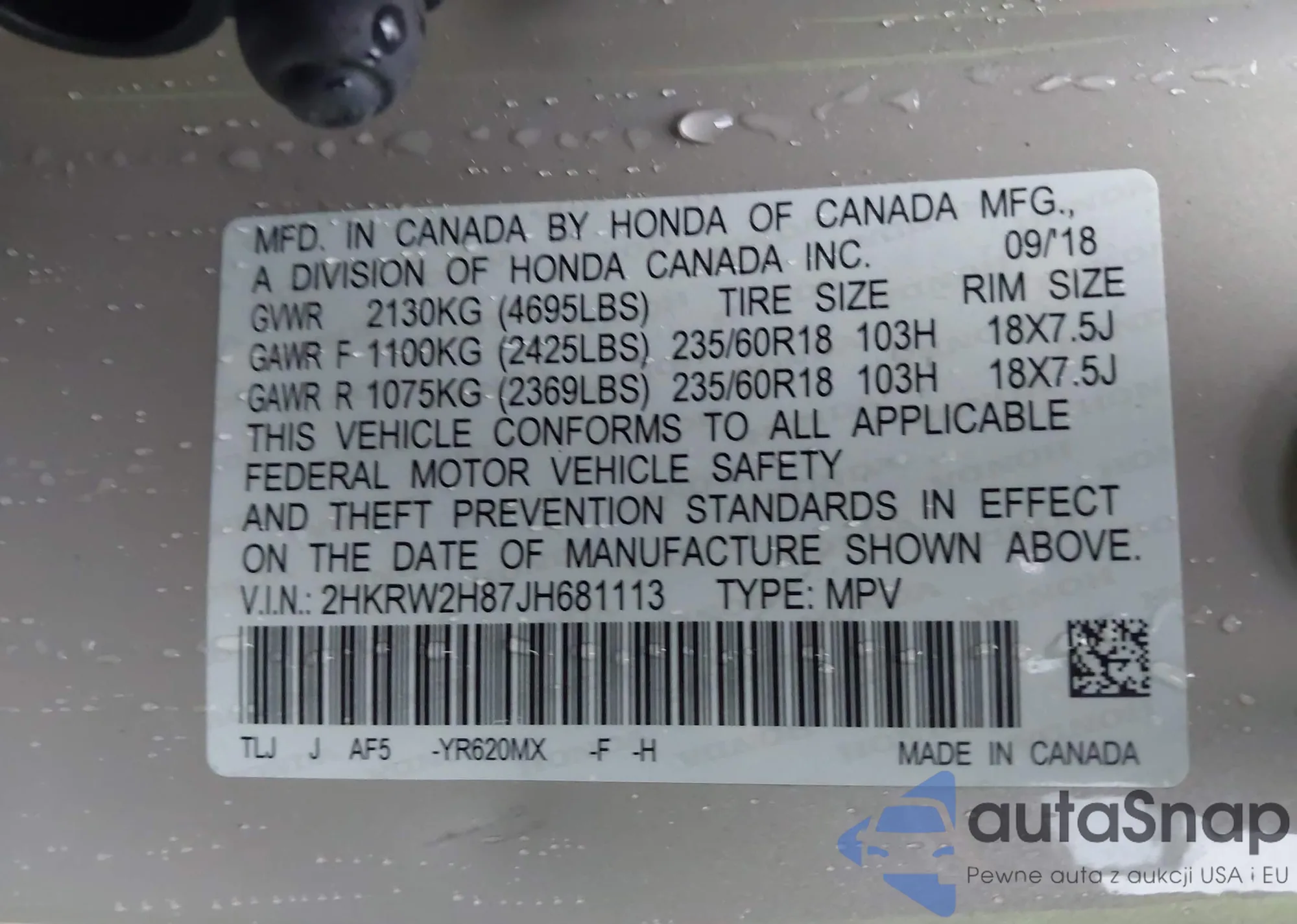 VIN: 2HKRW2H87JH681113