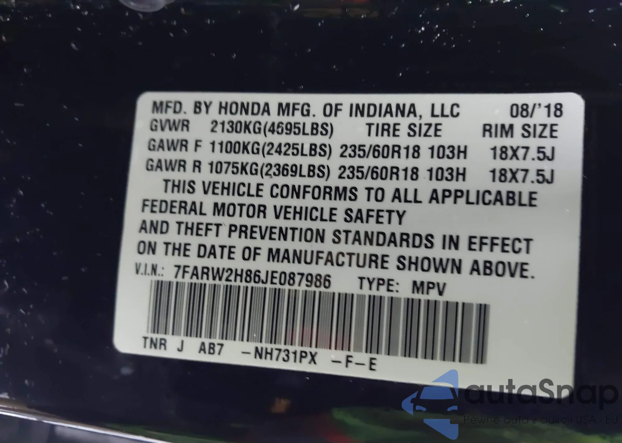 Автомобиль Honda CR-V 2018 (VIN 7FARW2H86JE087986) ранее не участвовал в торгах. Документы чистые, пробег соответствует или ниже среднего по рынку. Продаётся страховой компанией — рекомендуем покупку. Доставка в порт займет около 6–8 недель.