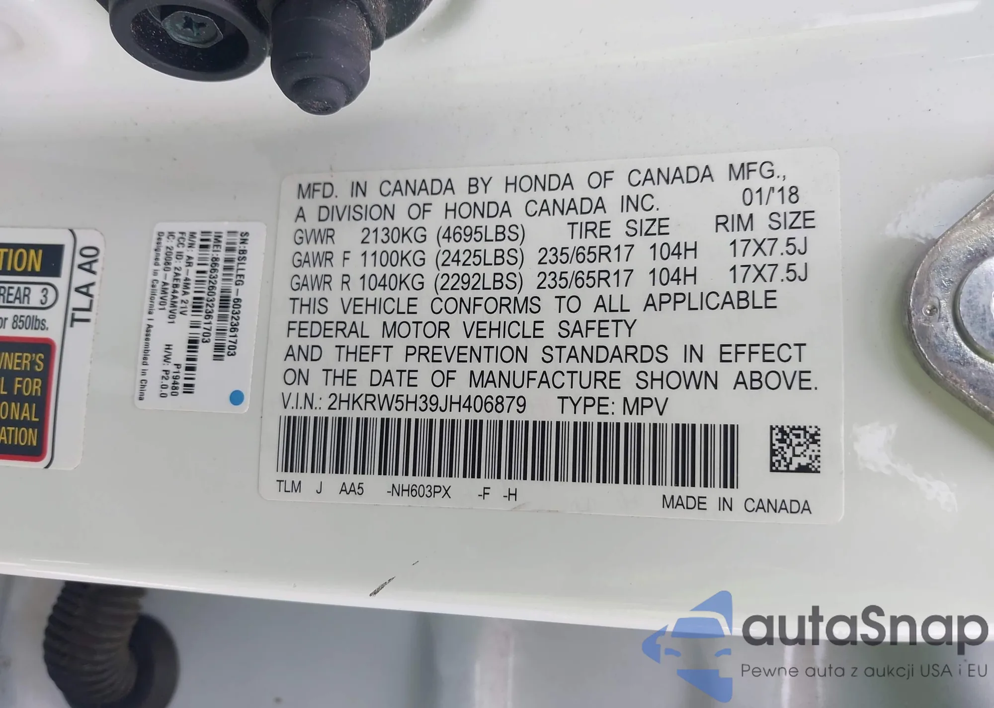 VIN: 2HKRW5H39JH406879
