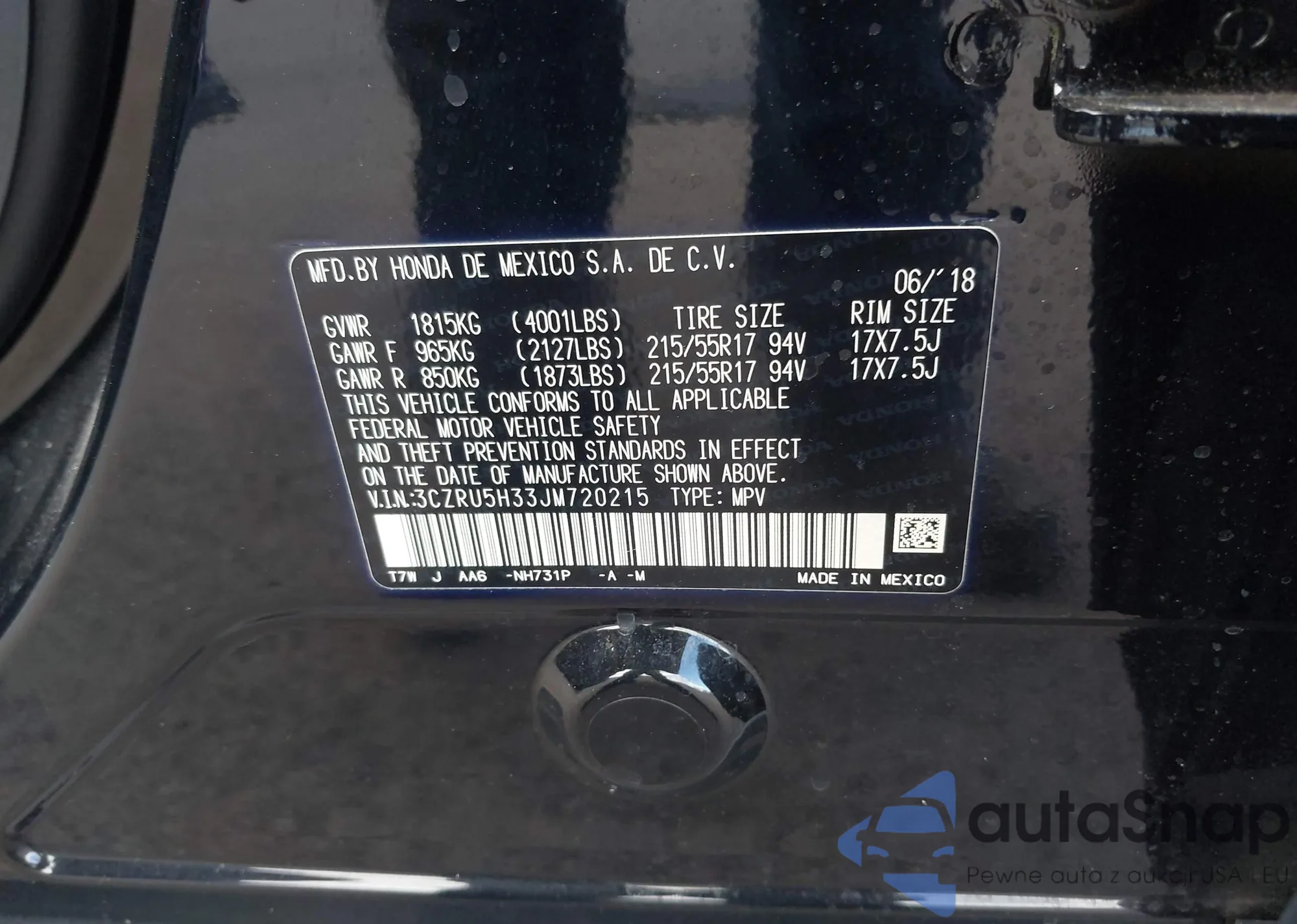 VIN: 3CZRU5H33JM720215