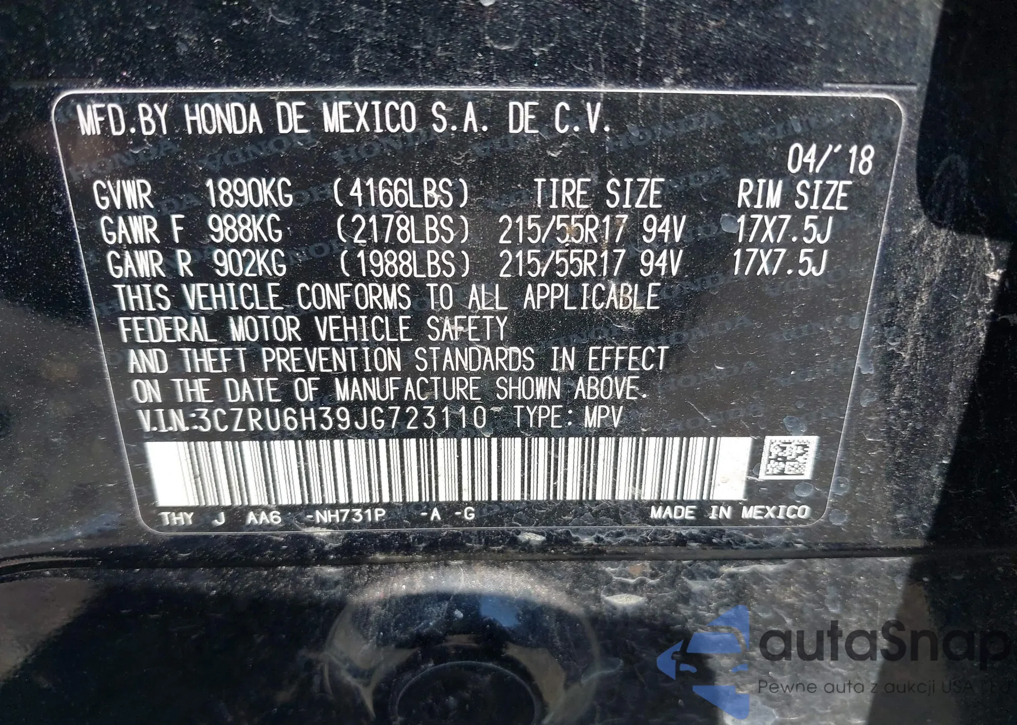 VIN: 3CZRU6H39JG723110