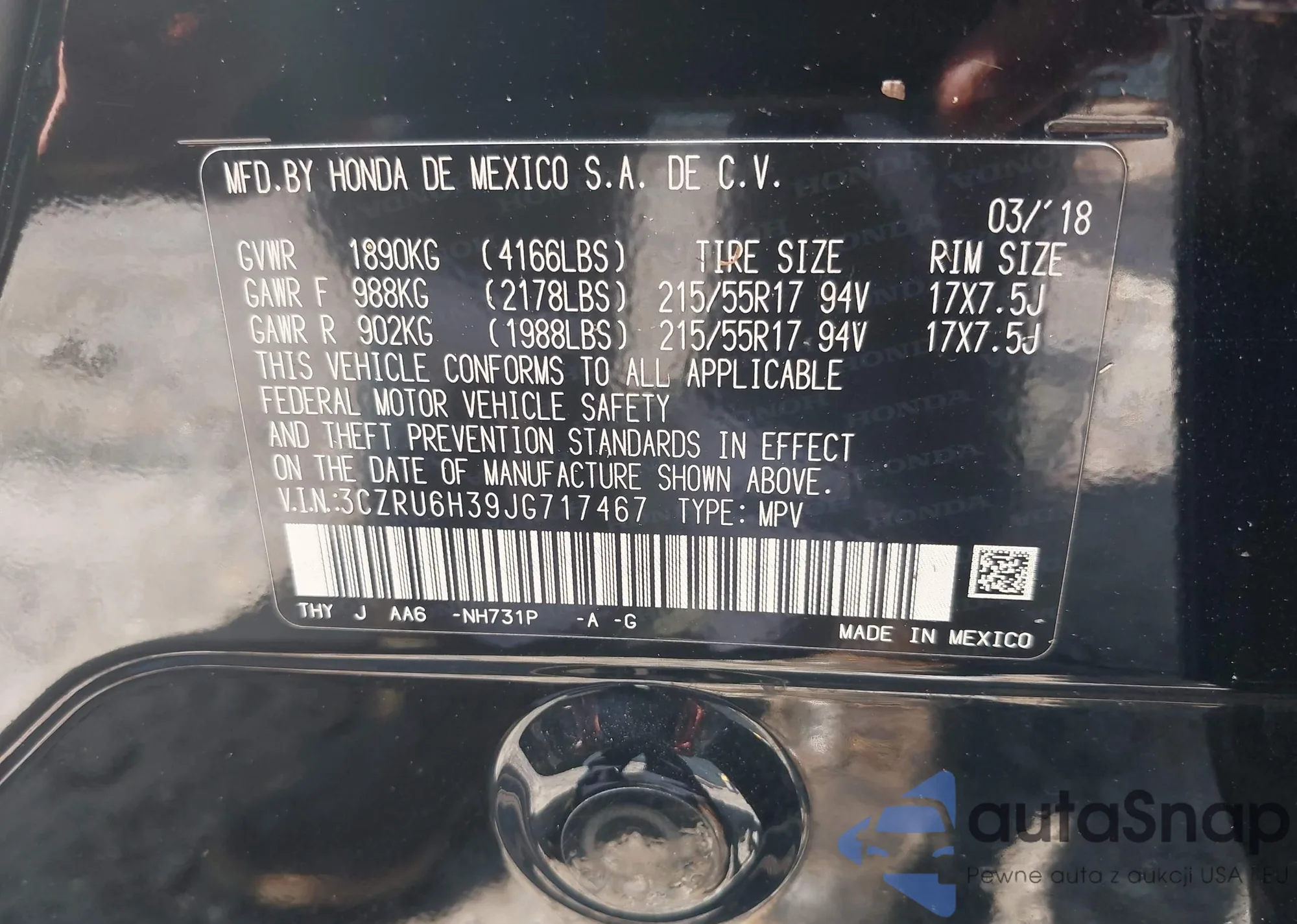 VIN: 3CZRU6H39JG717467