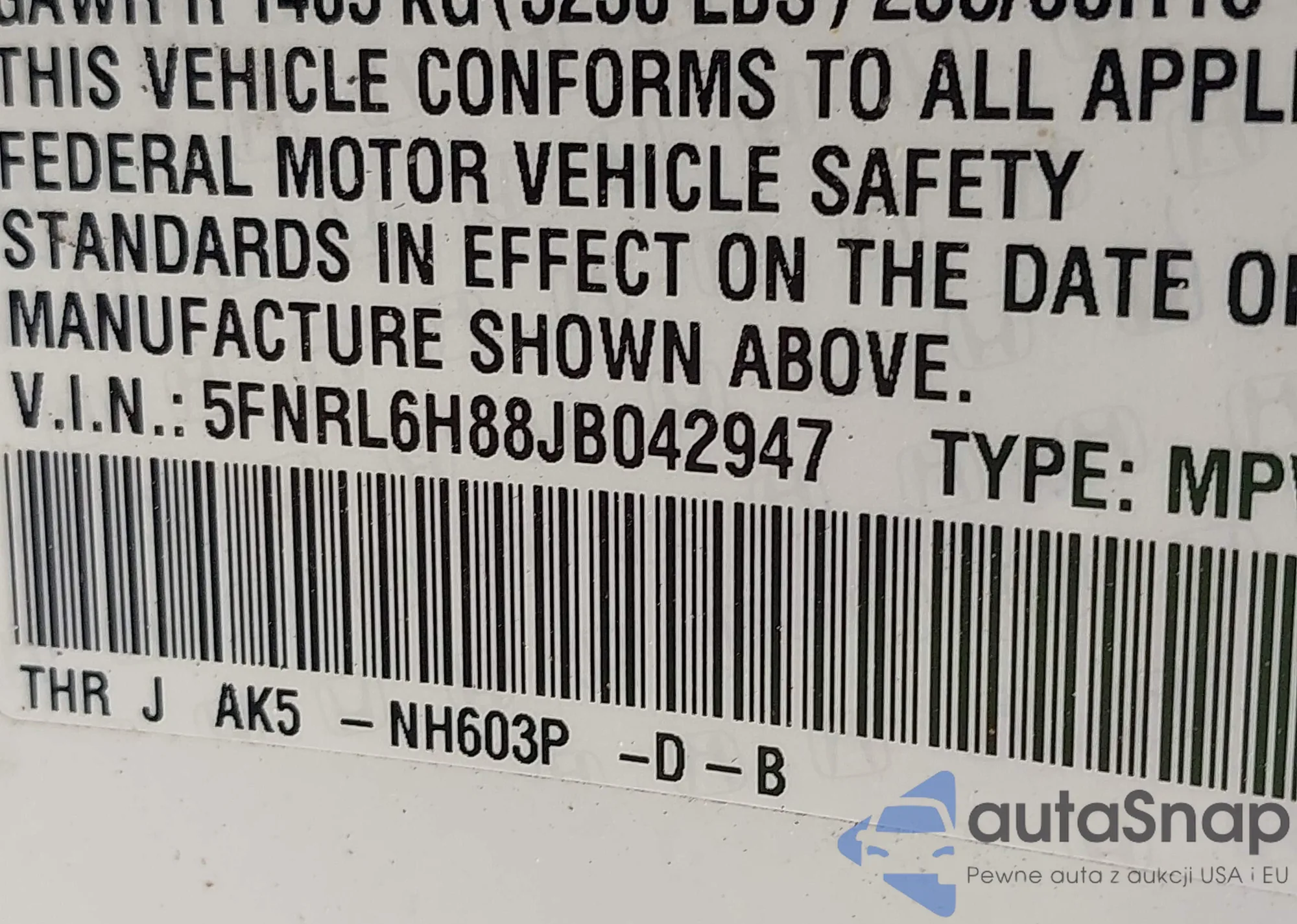 VIN: 5FNRL6H88JB042947