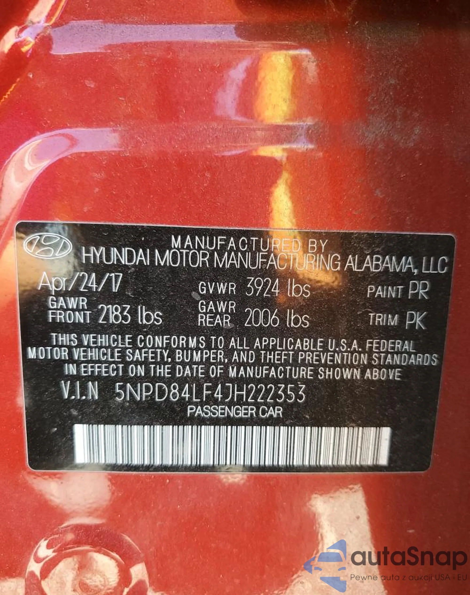 • VIN: 5NPD84LF4JH222353
