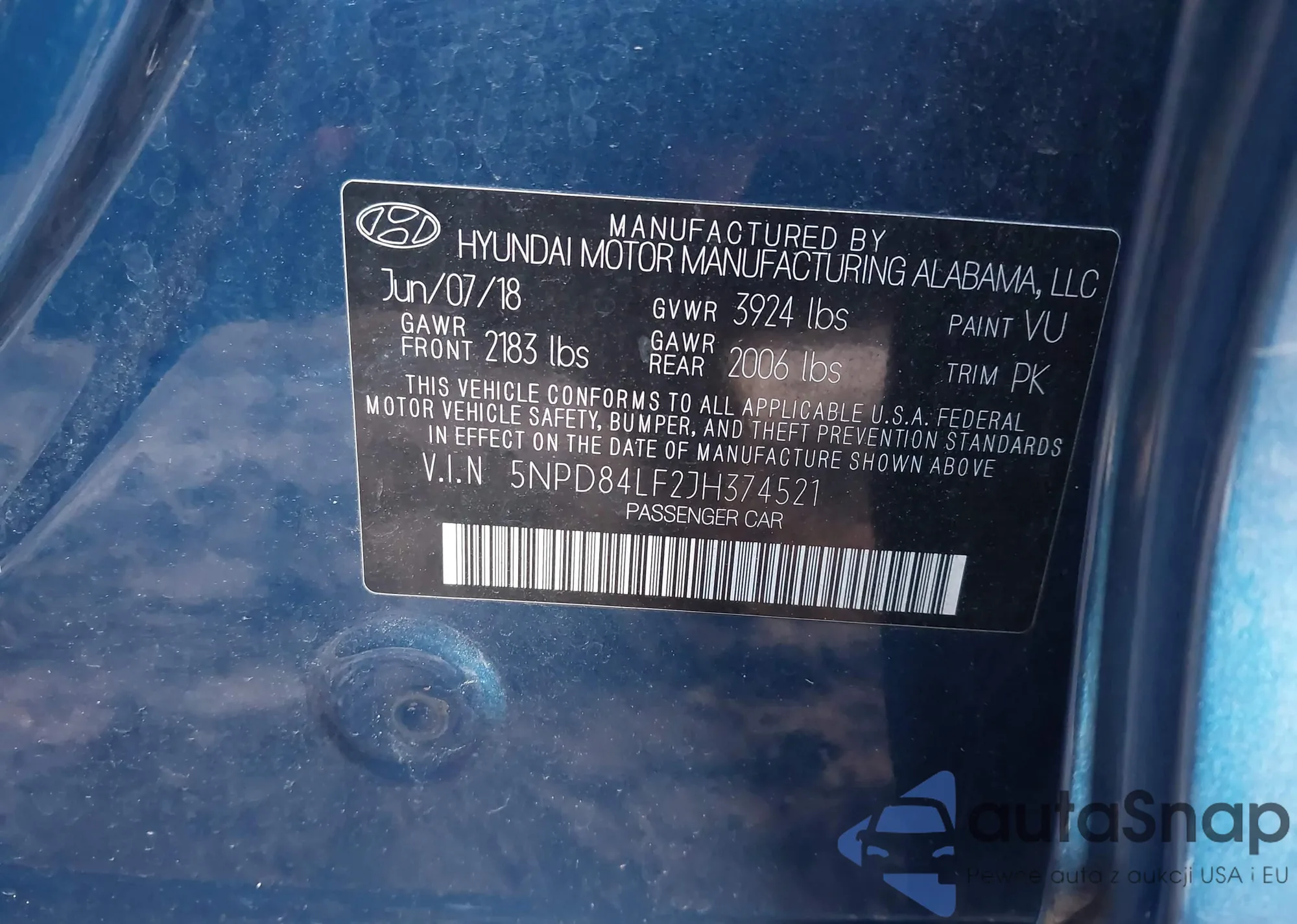 VIN: 5NPD84LF2JH374521