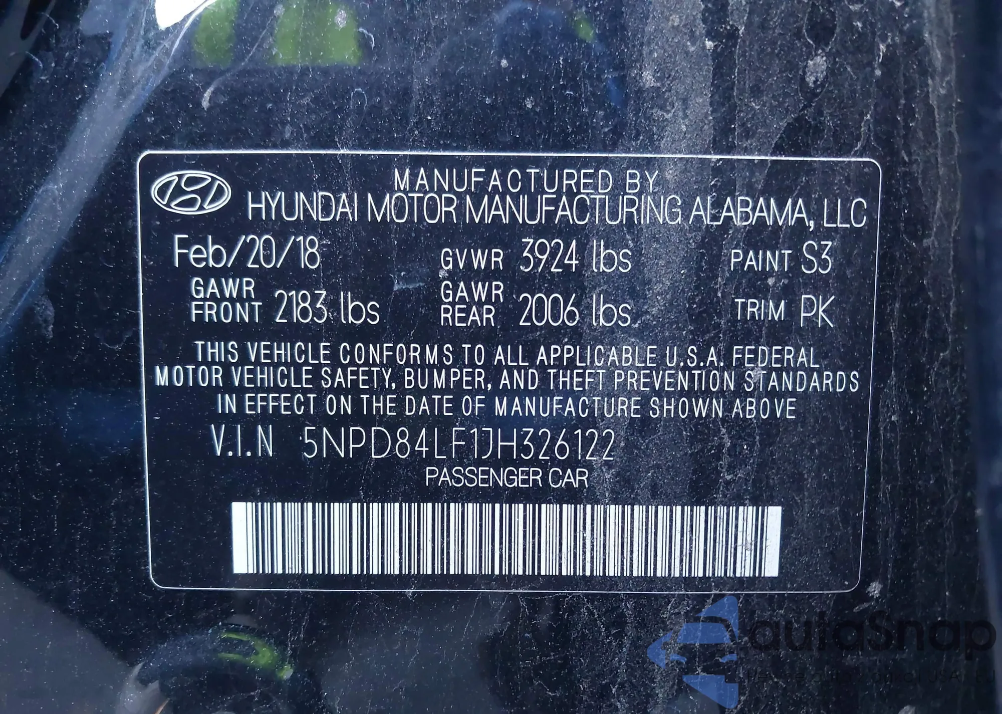 VIN: 5NPD84LF1JH326122