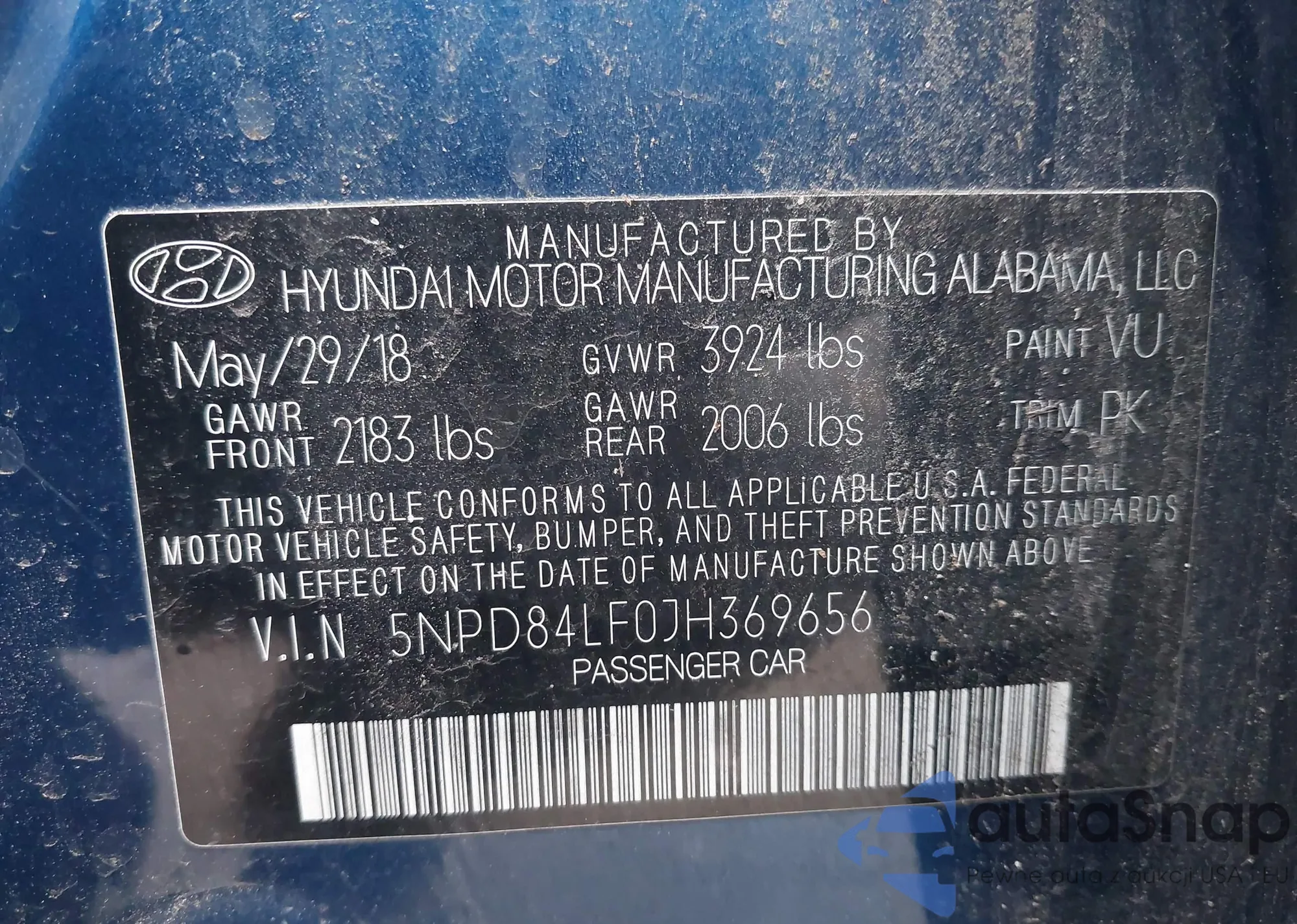 Автомобиль Hyundai Elantra 2018 (VIN 5NPD84LF0JH369656) ранее не участвовал в торгах. Документы чистые, пробег соответствует или ниже среднего по рынку. Продаётся страховой компанией — рекомендуем покупку. Доставка в порт займет около 6–8 недель.