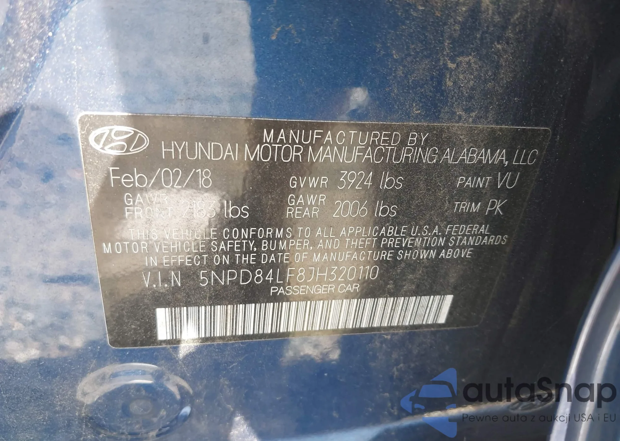 VIN: 5NPD84LF8JH320110