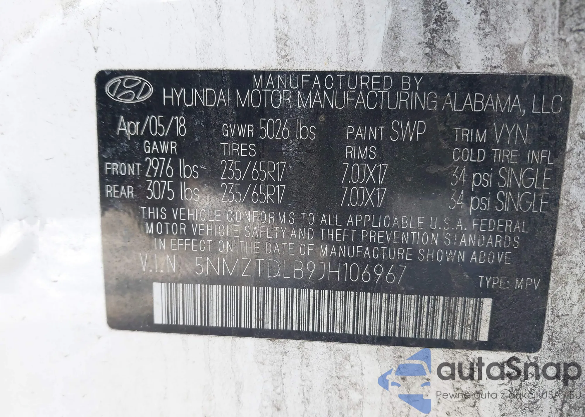 VIN: 5NMZTDLB9JH106967