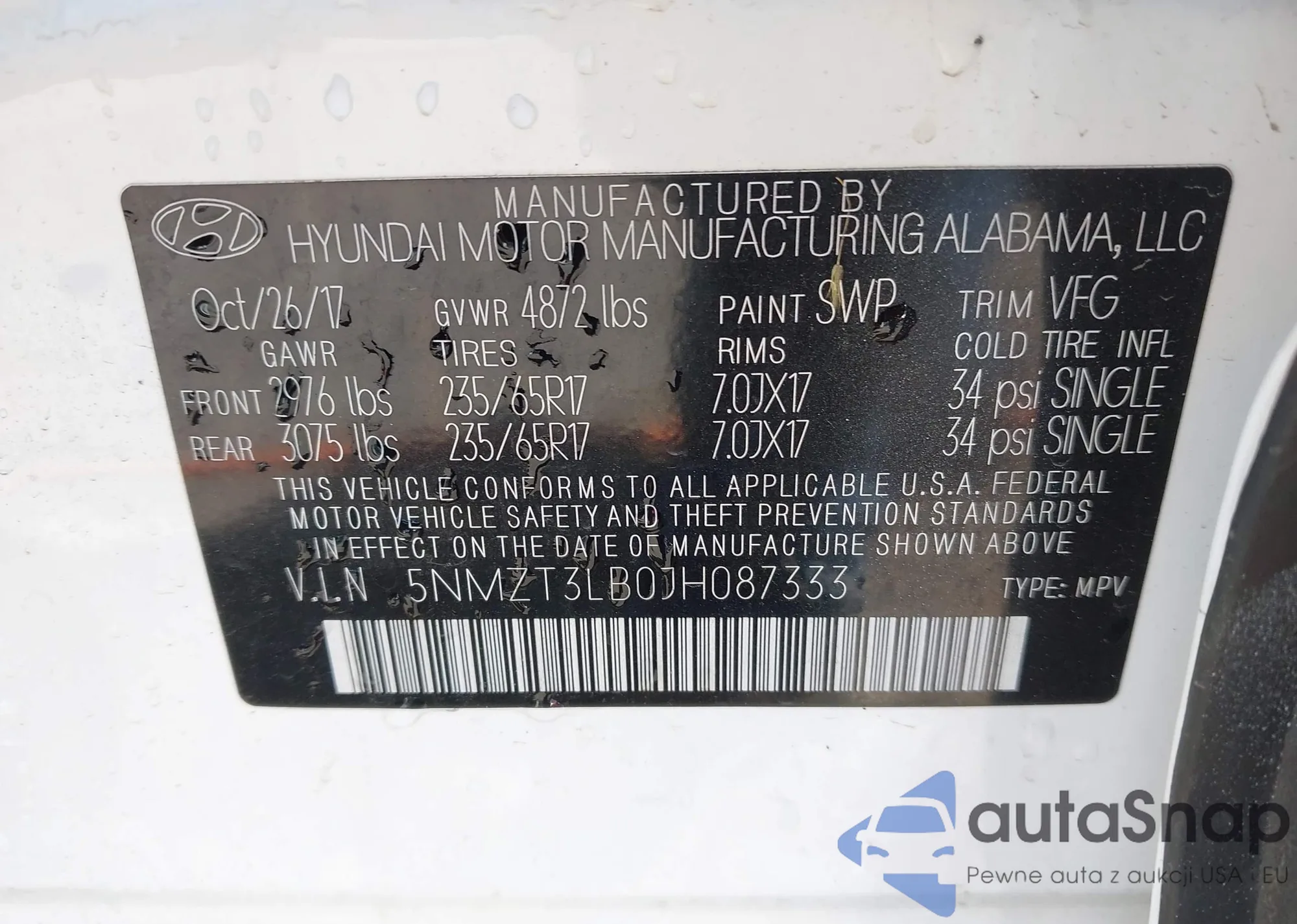 VIN: 5NMZT3LB0JH087333