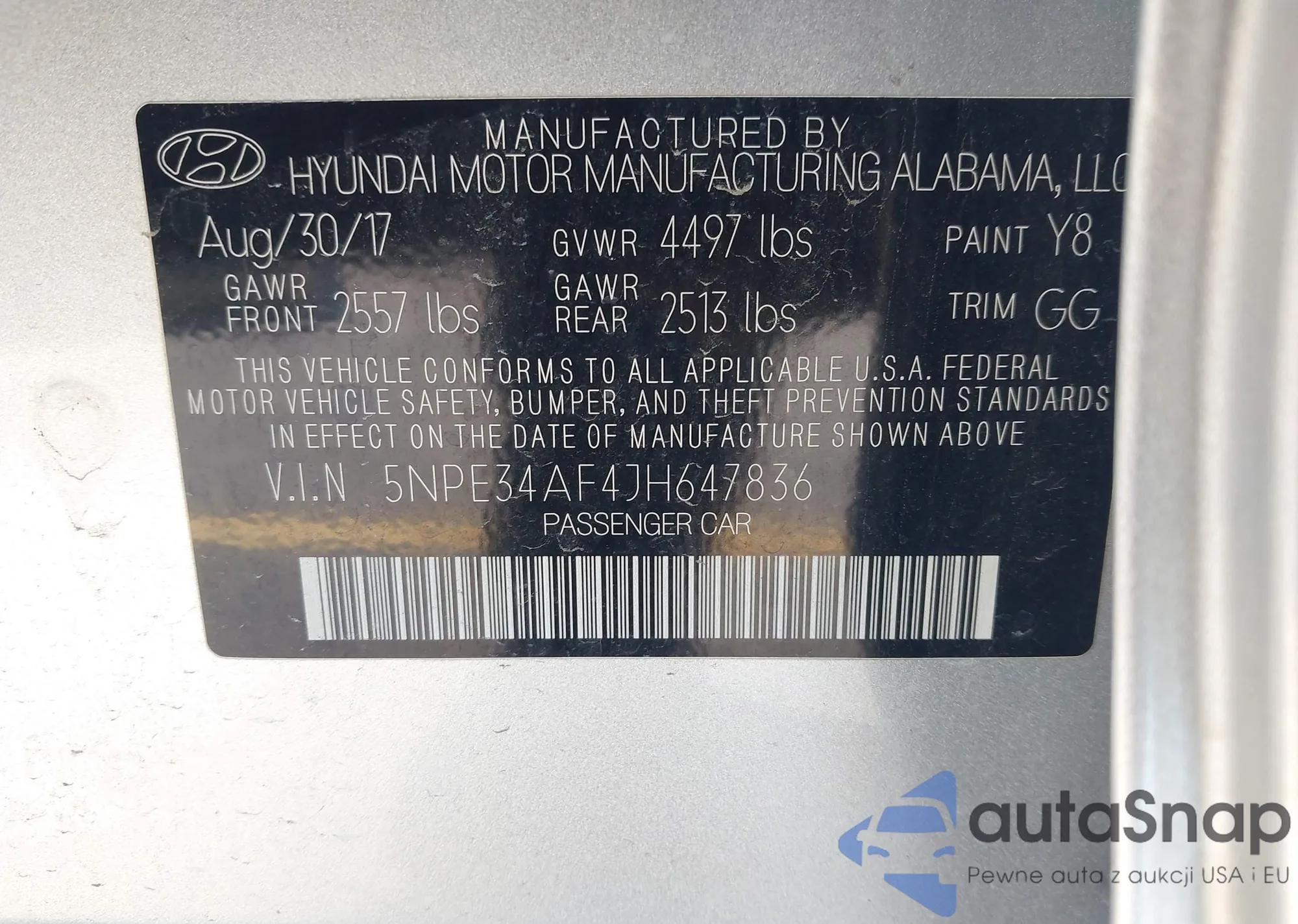 • VIN: 5NPE34AF4J8647836