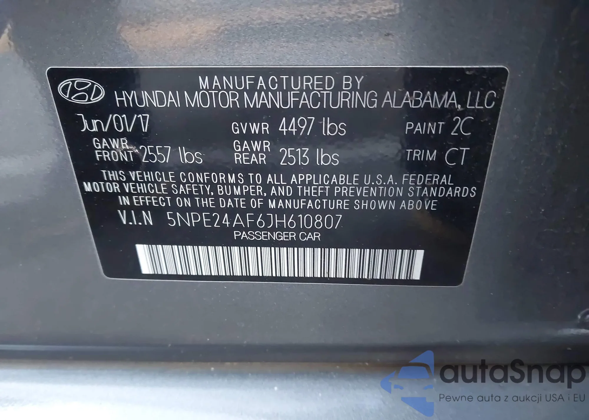 VIN: 5NPE24AF6JH610807
