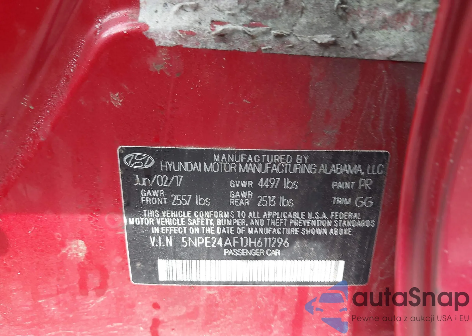 VIN: 5NPE24AF1JH611296