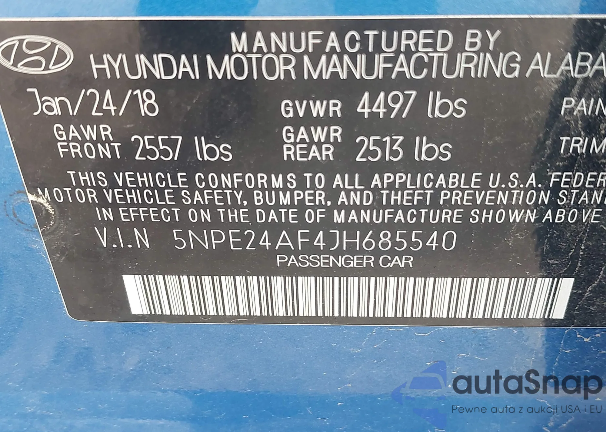 VIN: 5NPE24AF4JH685540