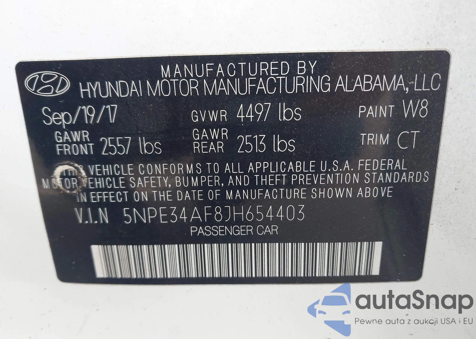 VIN: 5NPE34AF8JH654403