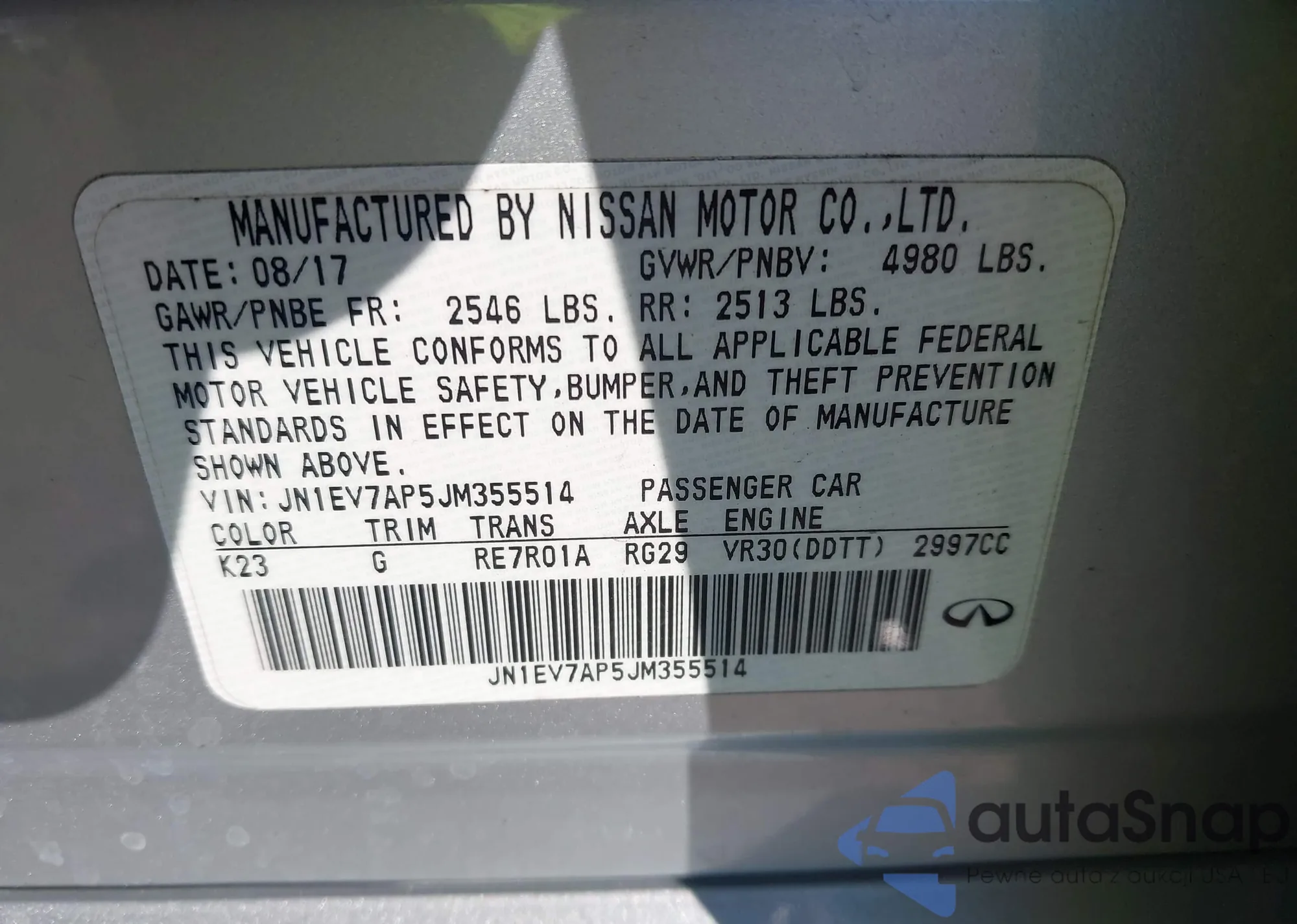 VIN: JN1EV7AP5JM355514