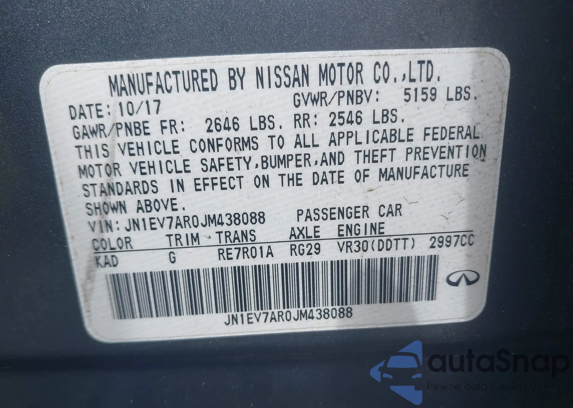 VIN: JN1EV7AR0JM438088
