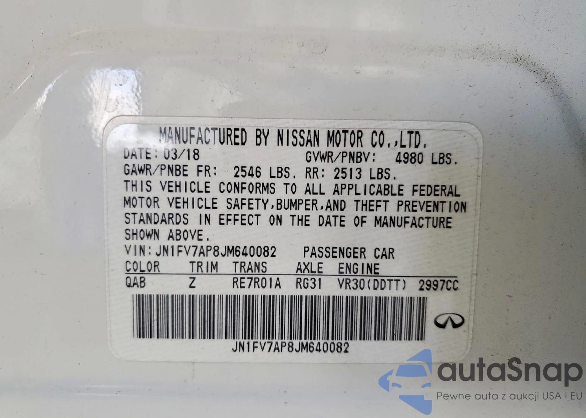 Автомобиль Infiniti Q50 2018 (VIN JN1FV7AP8JM640082) продаётся непроверенным продавцом. Рекомендуем проверить отчет Carfax и подтвердить возможность регистрации перед покупкой.