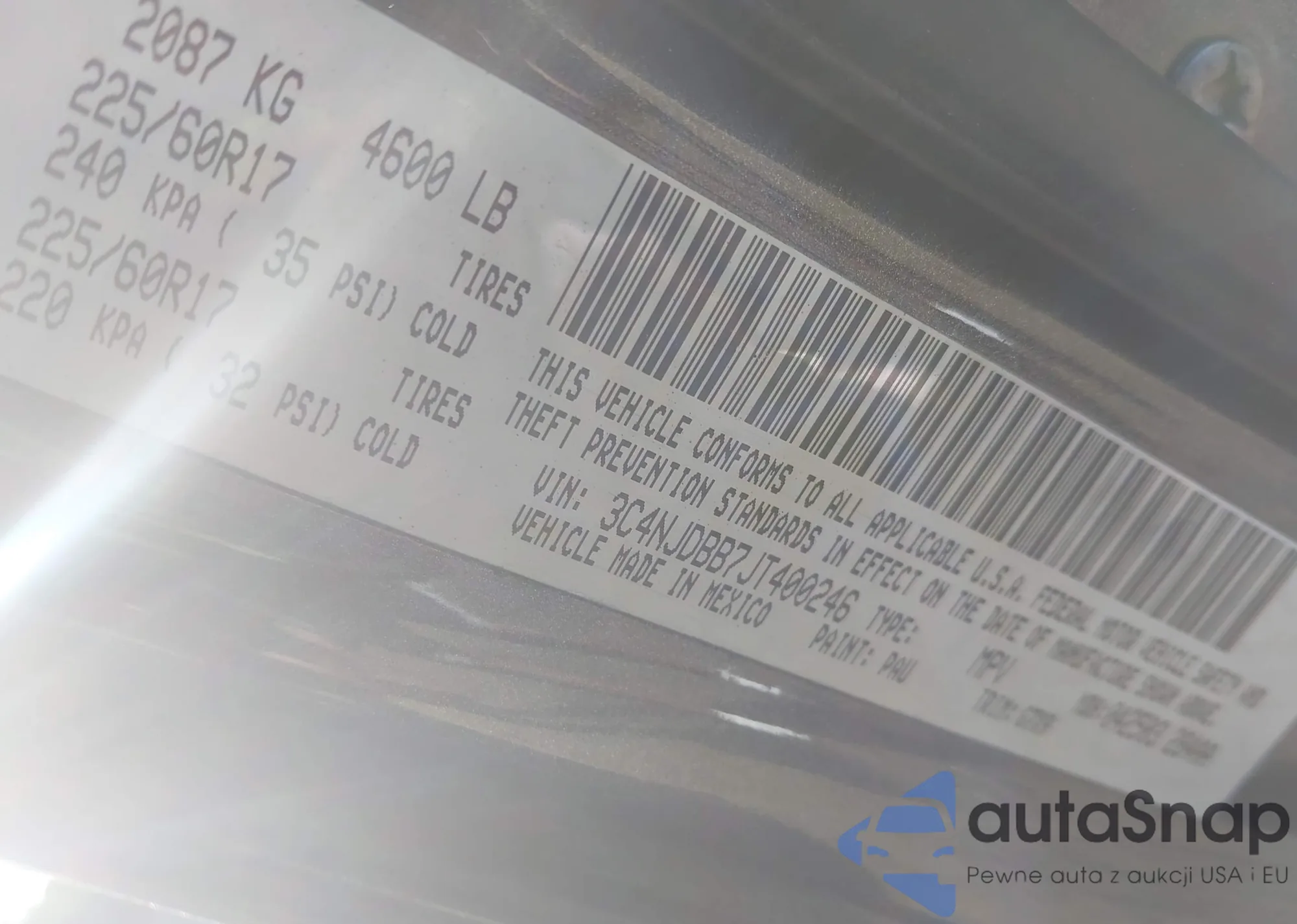 VIN: 3C4NJDBB7JT400246