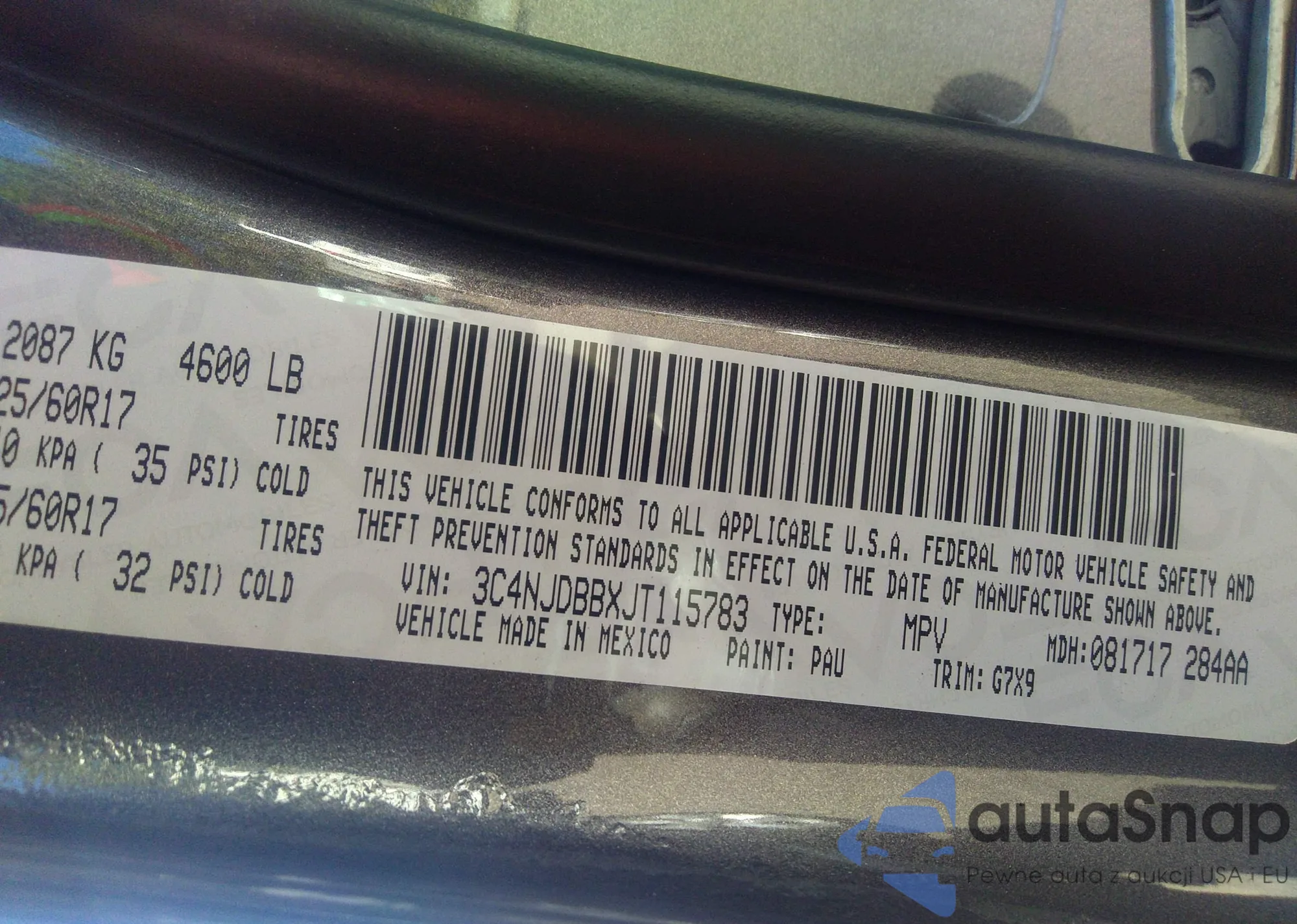 • VIN: 3C4NJDBBXJT115783