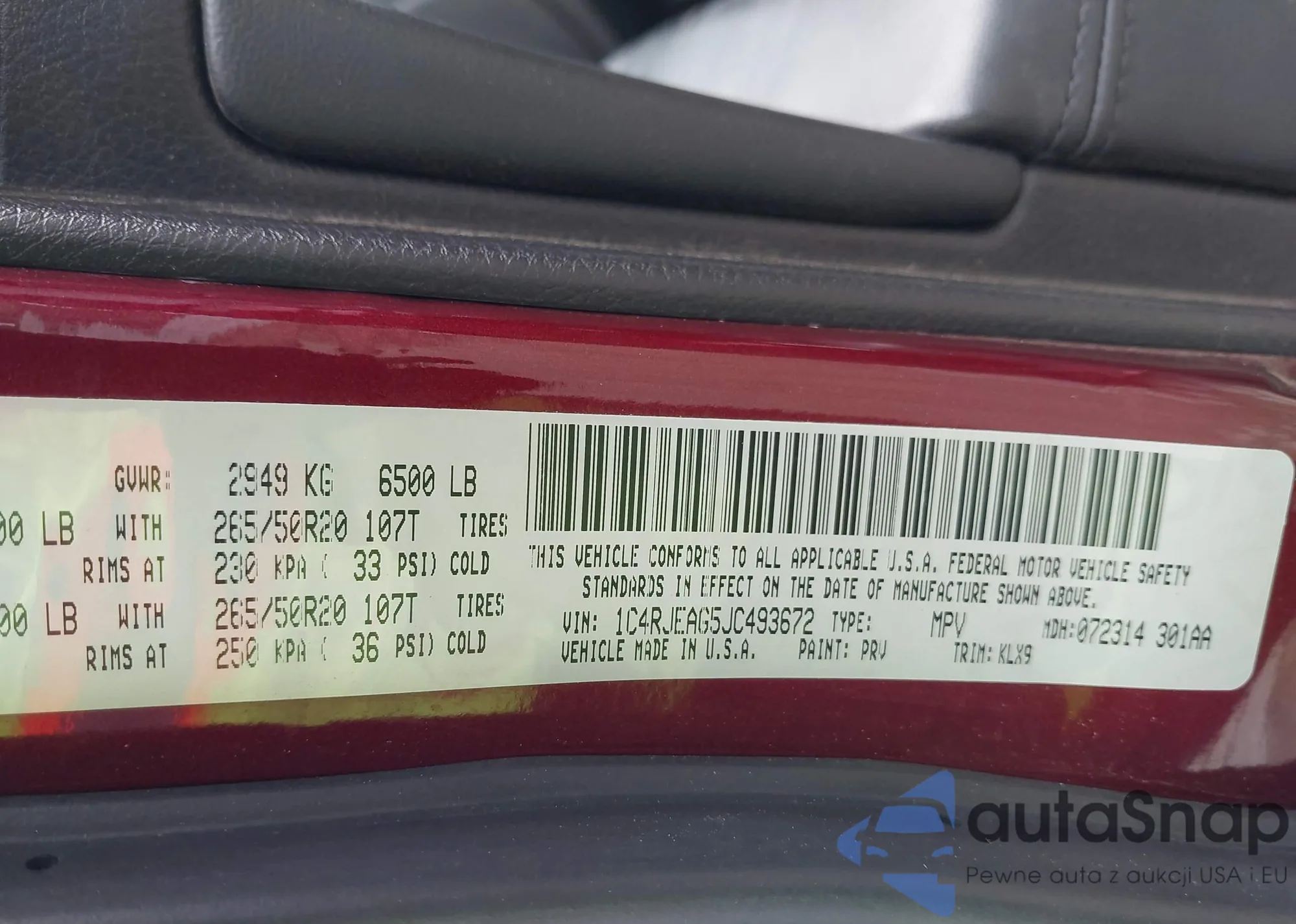 Автомобиль Jeep Grand Cherokee 2018 (VIN 1C4RJEAG5JC493672) ранее не участвовал в торгах. Документы чистые, пробег соответствует или ниже среднего по рынку. Продаётся страховой компанией — рекомендуем покупку. Доставка в порт займет около 6–8 недель.