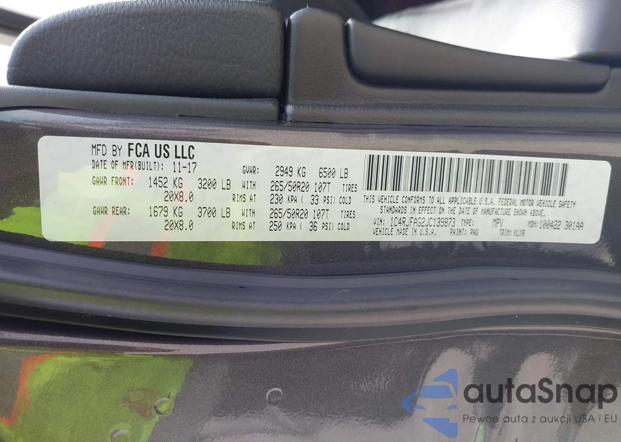 VIN: 1C4RJFAG2JC139873