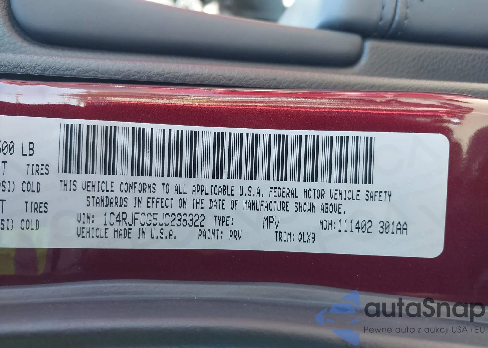 VIN: 1C4RJFCG5JC236322