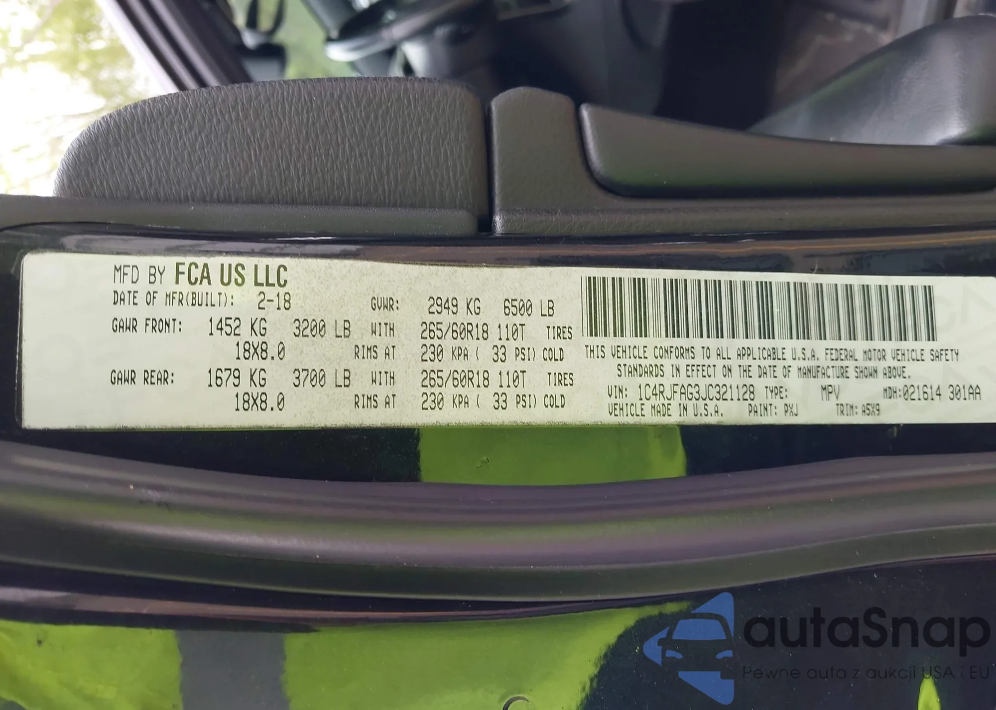 VIN: 1C4RJFAG3JC321128