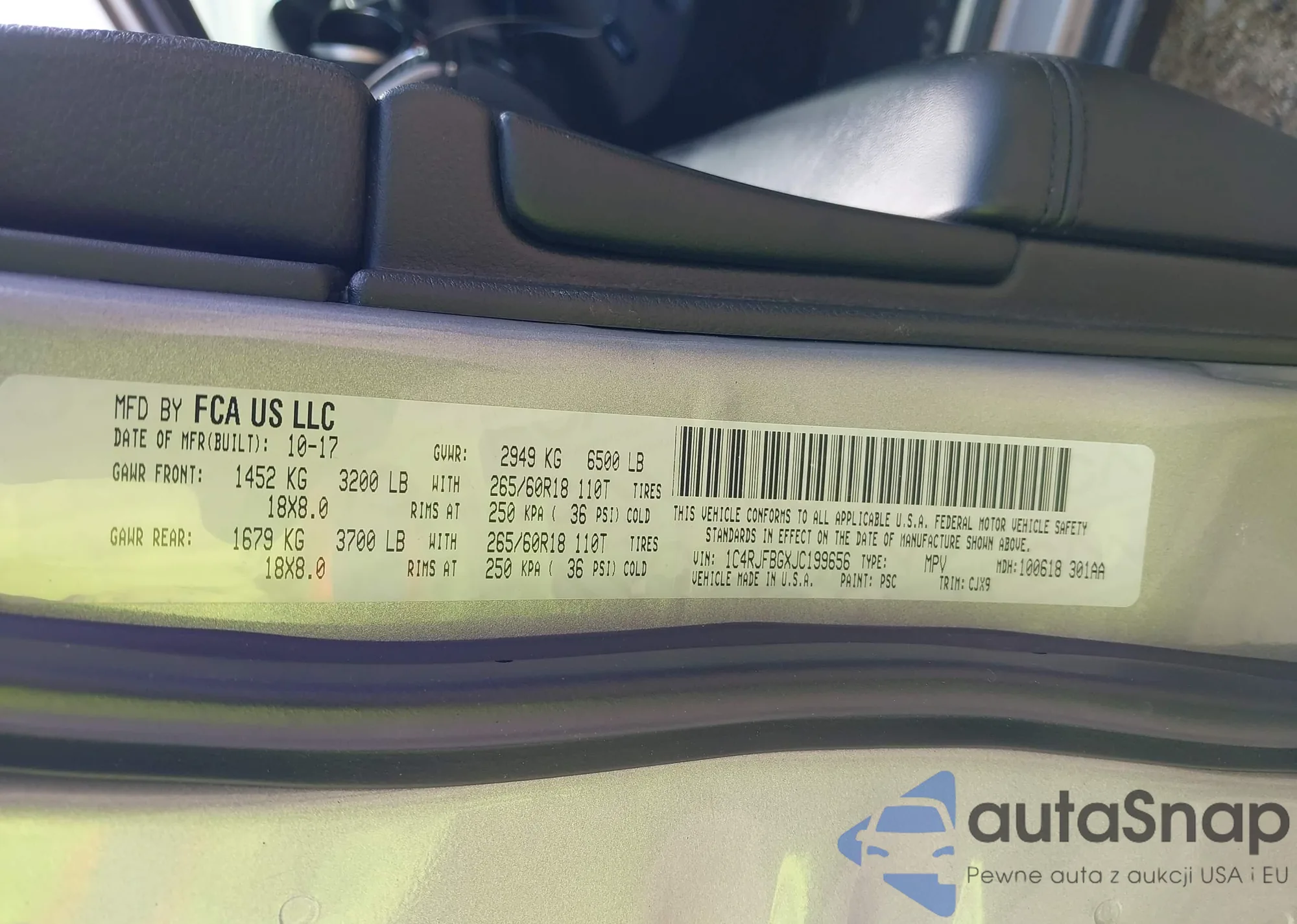 Автомобиль Jeep Grand Cherokee 2018 (VIN 1C4RJFBGXJC199656) ранее не участвовал в торгах. Документы чистые, пробег соответствует или ниже среднего по рынку. Продаётся страховой компанией — рекомендуем покупку. Доставка в порт займет около 6–8 недель.