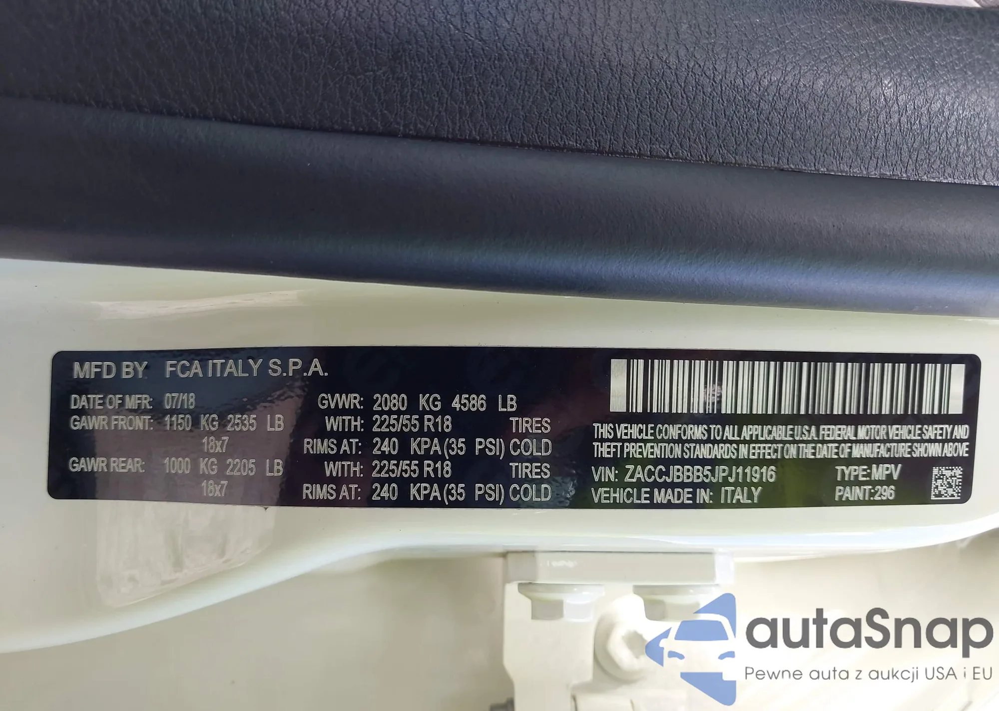 VIN: ZACCJBBB5JPJ11916