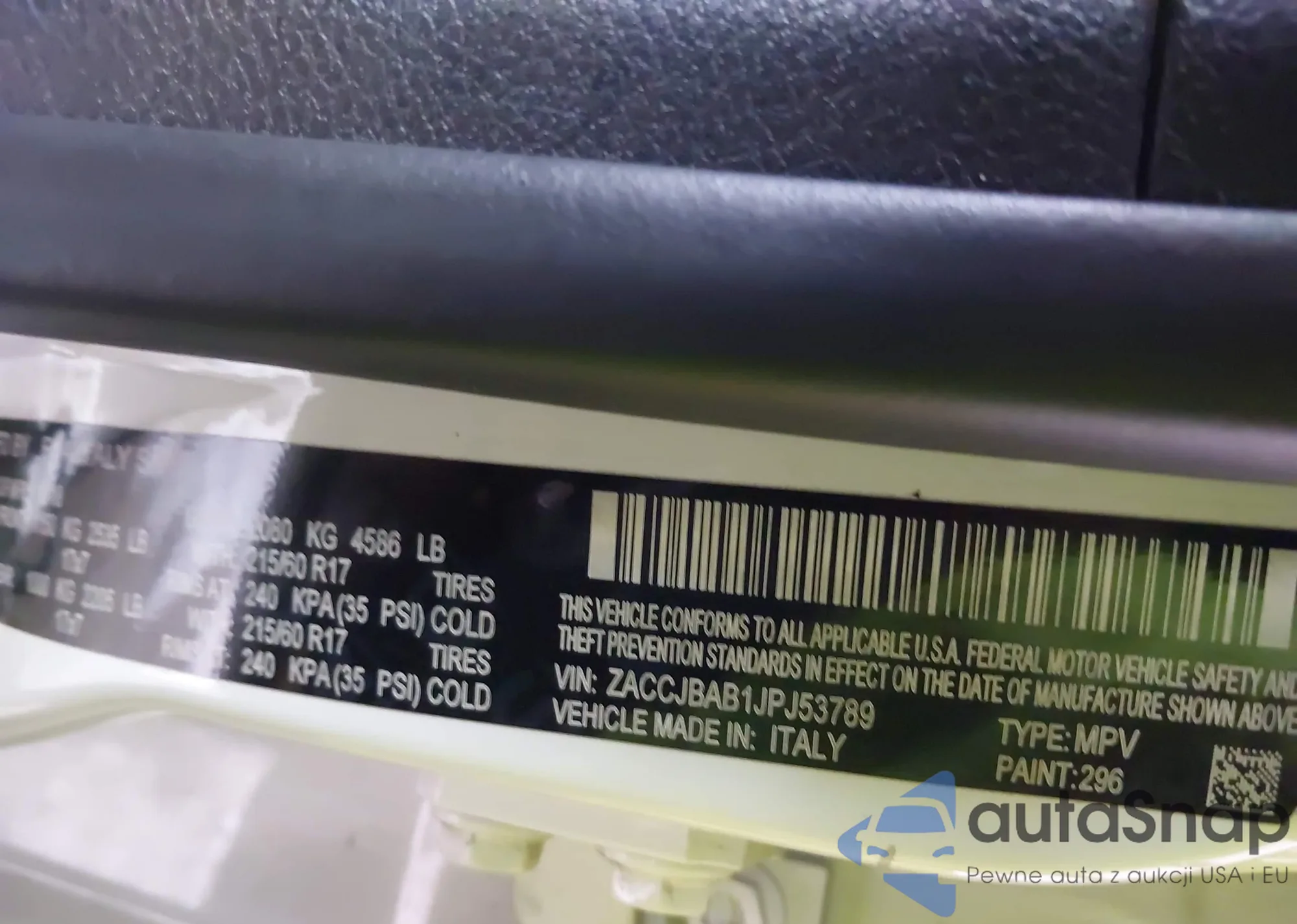 VIN: ZACCJBAB1JPJ53789