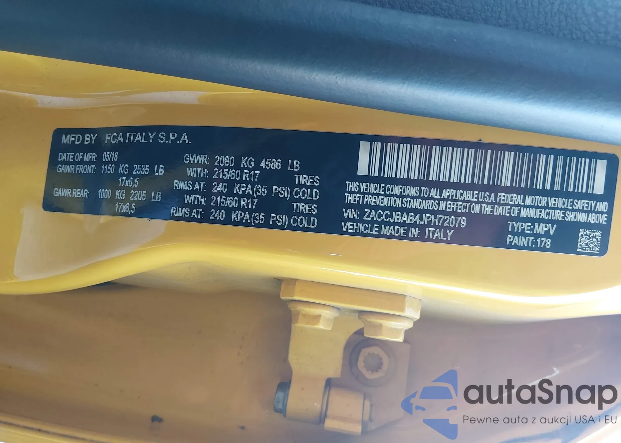 Автомобиль Jeep Renegade 2018 (VIN ZACCJBAB4JPH72079) ранее не участвовал в торгах. Документы чистые, пробег соответствует или ниже среднего по рынку. Продаётся страховой компанией — рекомендуем покупку. Доставка в порт займет около 6–8 недель.