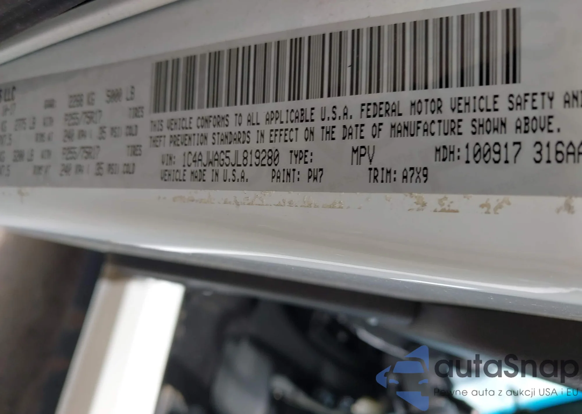 VIN: 1C4AJWAG5JL819280