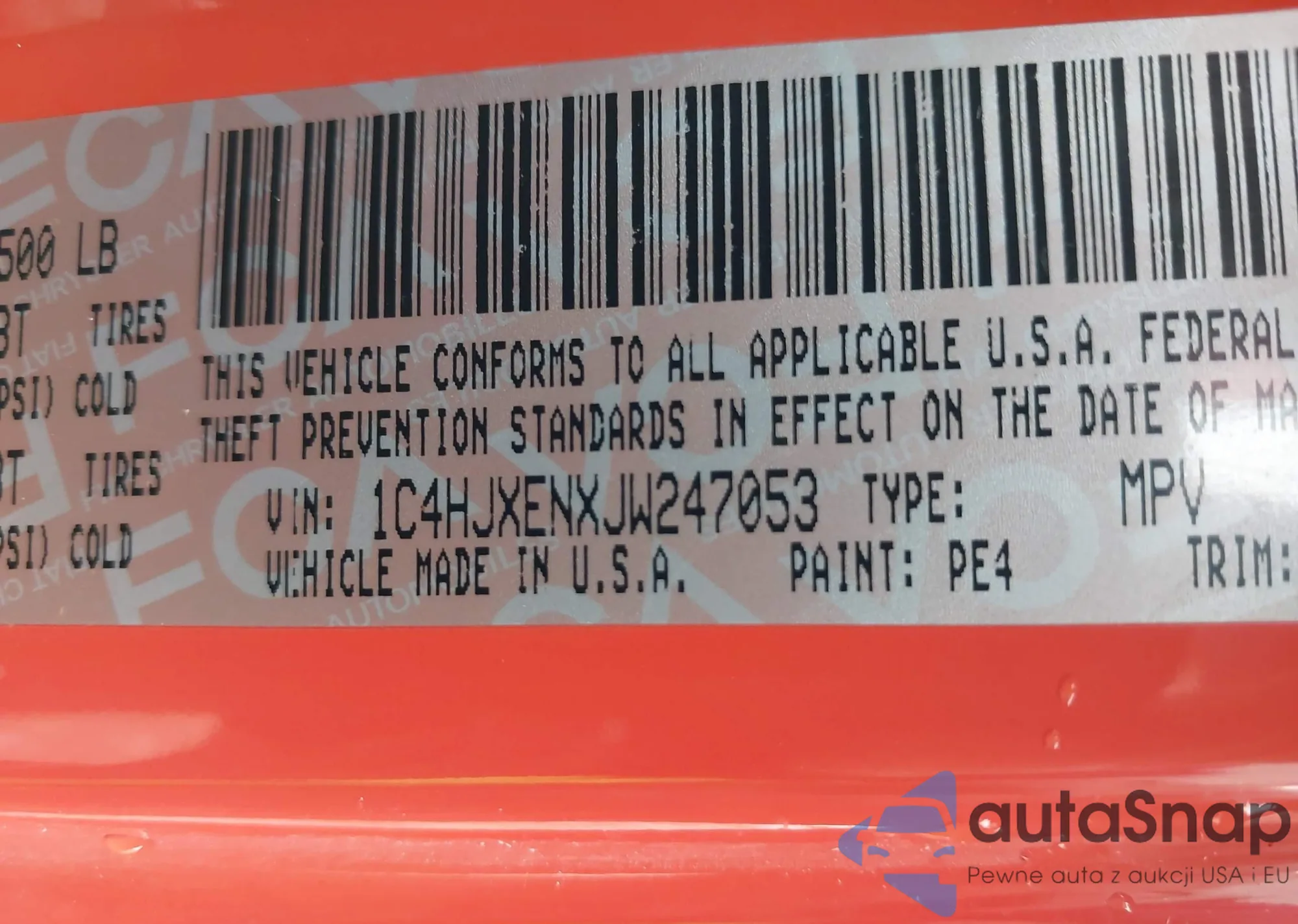 Автомобиль Jeep Wrangler 2018 (VIN 1C4HJXENXJW247053) ранее не участвовал в торгах. Документы чистые, пробег соответствует или ниже среднего по рынку. Продаётся страховой компанией — рекомендуем покупку. Доставка в порт займет около 6–8 недель.