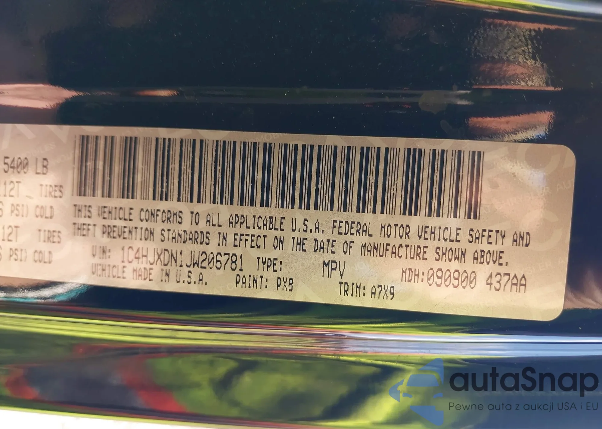 VIN: 1C4HJXDN1JW206781